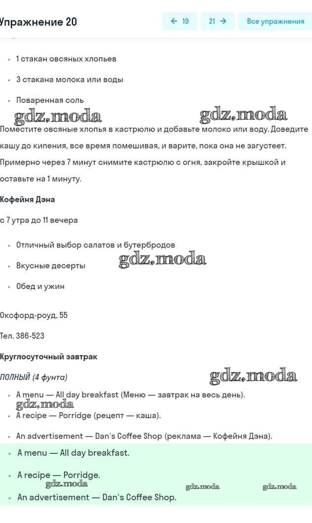 ОТВЕТ на задание № 20 Учебник по Английскому языку 6 класс Вербицкая Forward