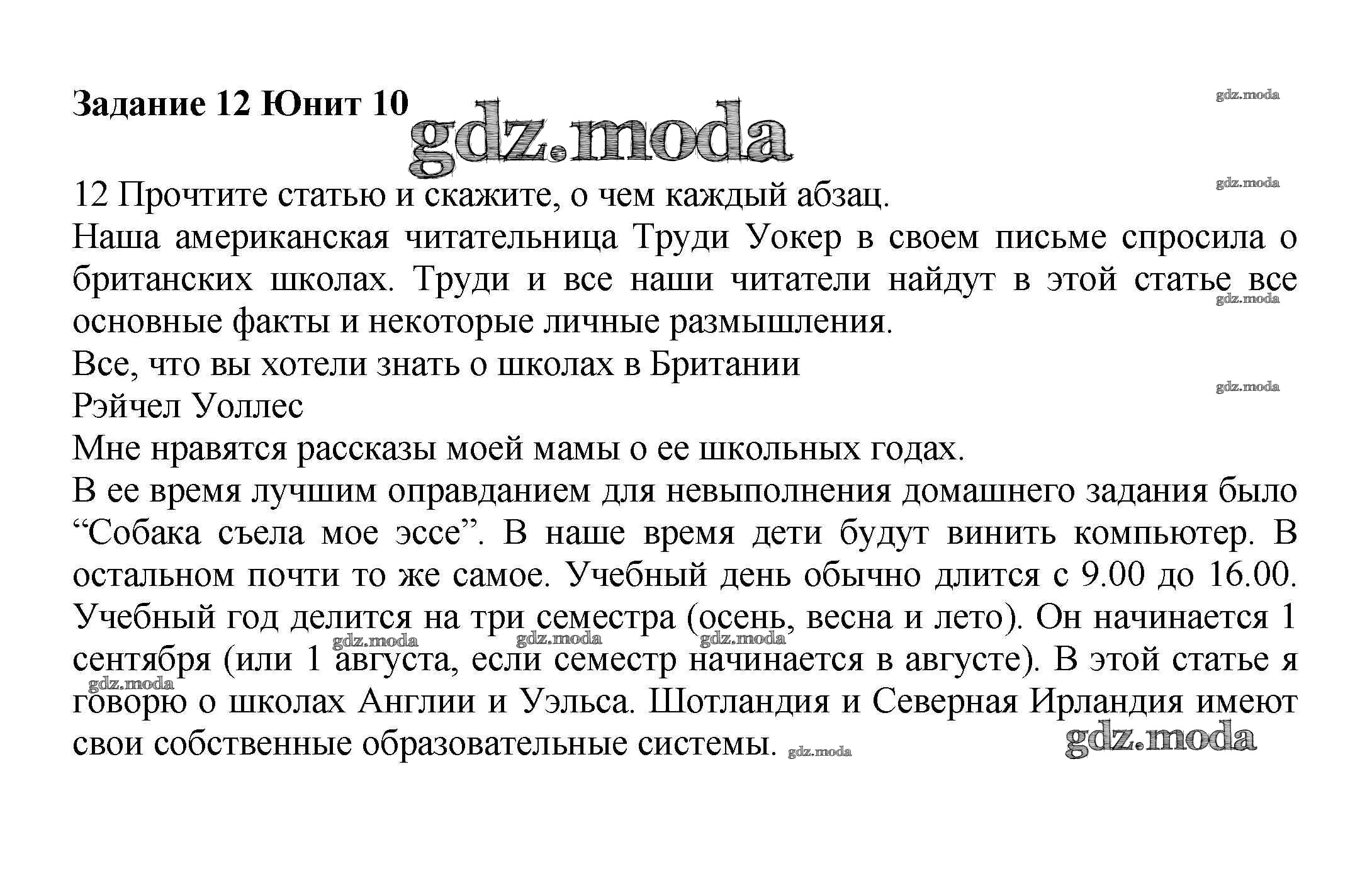 ОТВЕТ на задание № 12 Учебник по Английскому языку 6 класс Вербицкая Forward