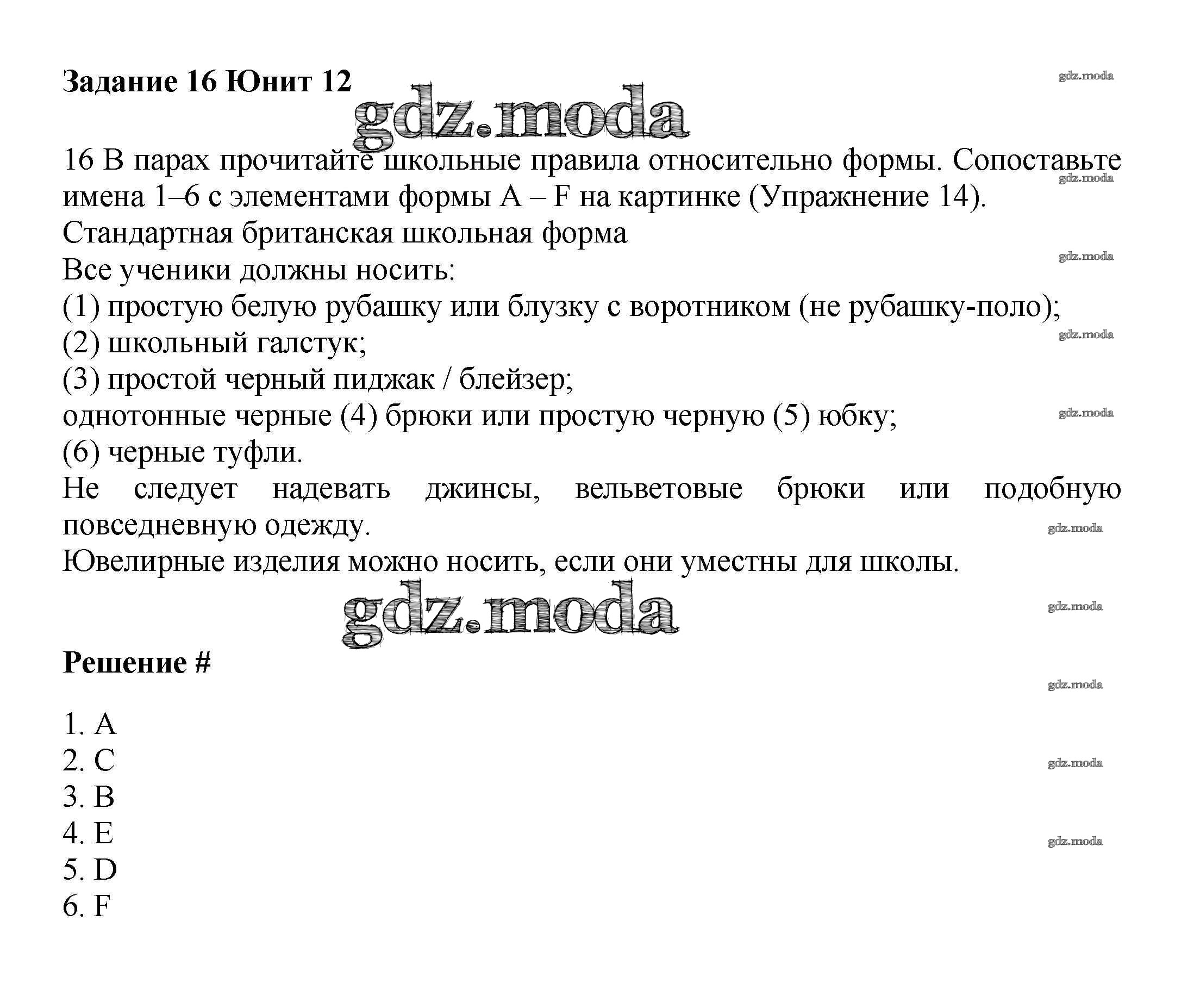 ОТВЕТ на задание № 16 Учебник по Английскому языку 6 класс Вербицкая Forward