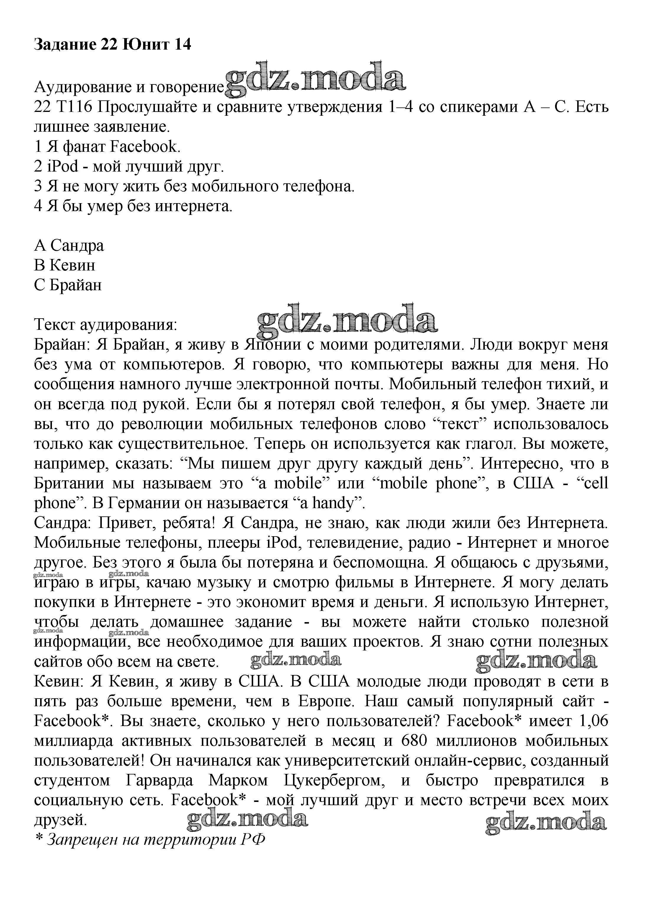 ОТВЕТ на задание № 22 Учебник по Английскому языку 6 класс Вербицкая Forward