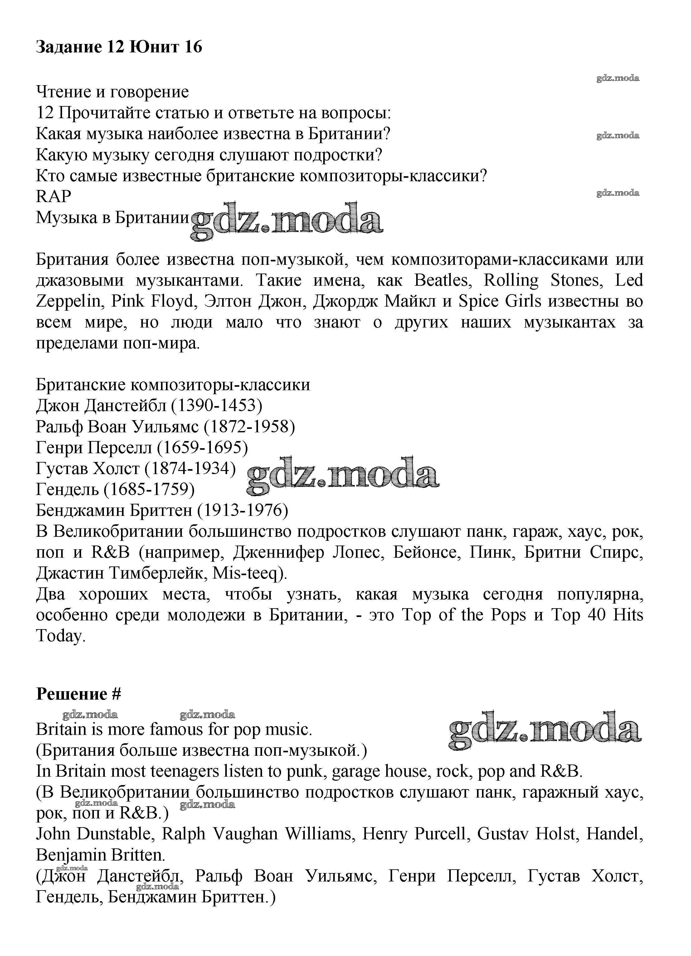 ОТВЕТ на задание № 12 Учебник по Английскому языку 6 класс Вербицкая Forward