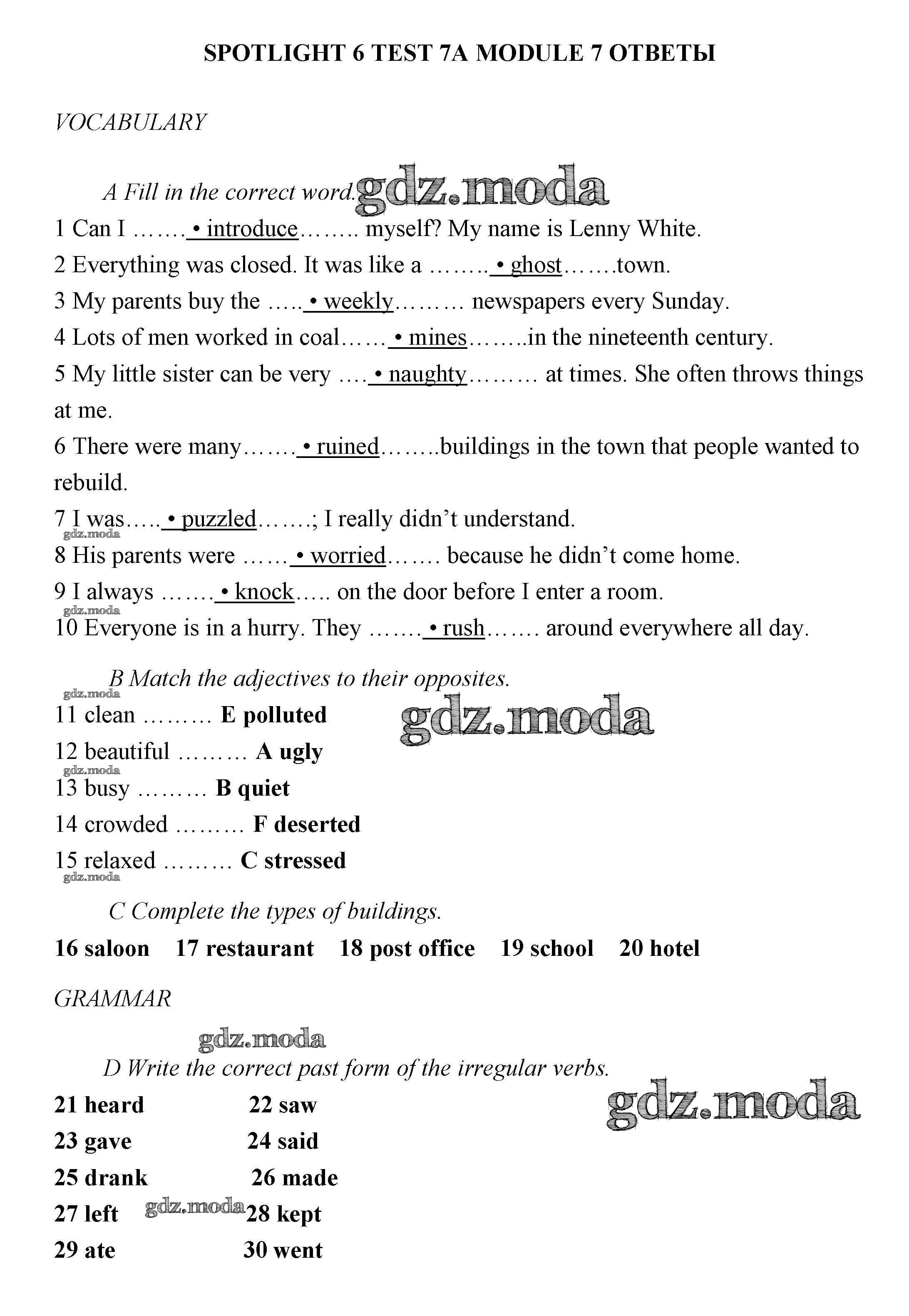 ГДЗ решение к заданию № 7А Английский язык 6 класс контрольные задания Ваулина Spotlight Просвещение 2017 ФГОС бесплатно на гдз.мода!