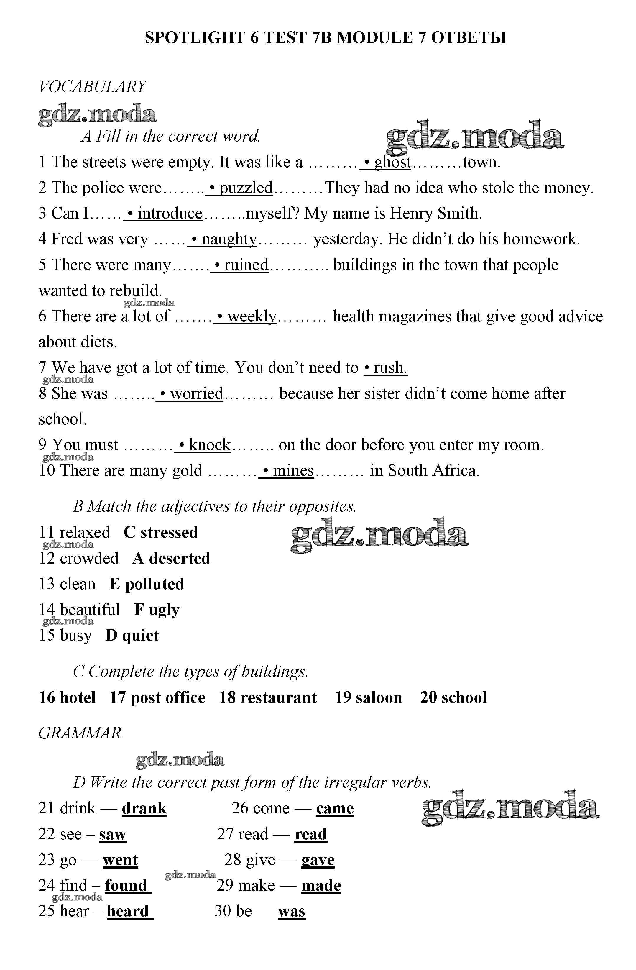 ГДЗ решение к заданию № 7В Английский язык 6 класс контрольные задания Ваулина Spotlight Просвещение 2017 ФГОС бесплатно на гдз.мода!