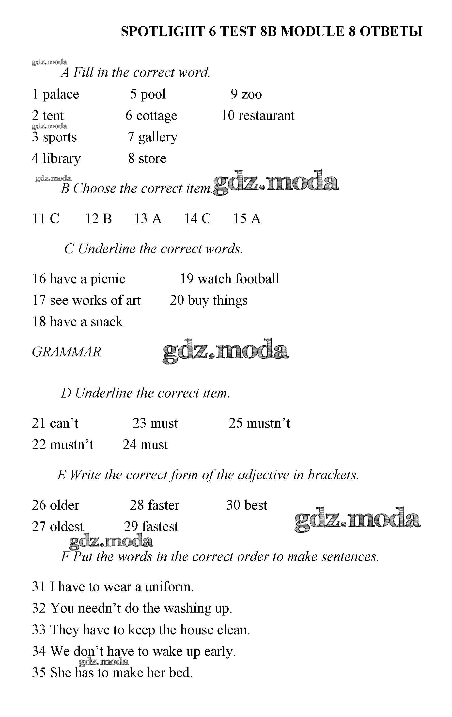 ГДЗ решение к заданию № 8А Английский язык 6 класс контрольные задания Ваулина Spotlight Просвещение 2017 ФГОС бесплатно на гдз.мода!