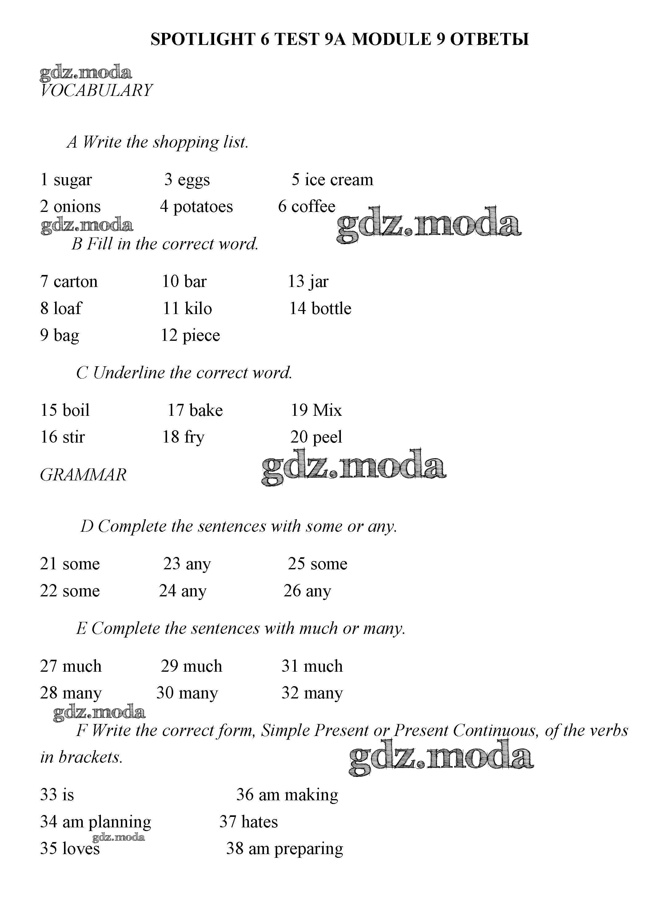 ОТВЕТ на задание № 8В Контрольные задания по Английскому языку 6 класс Ваулина Spotlight