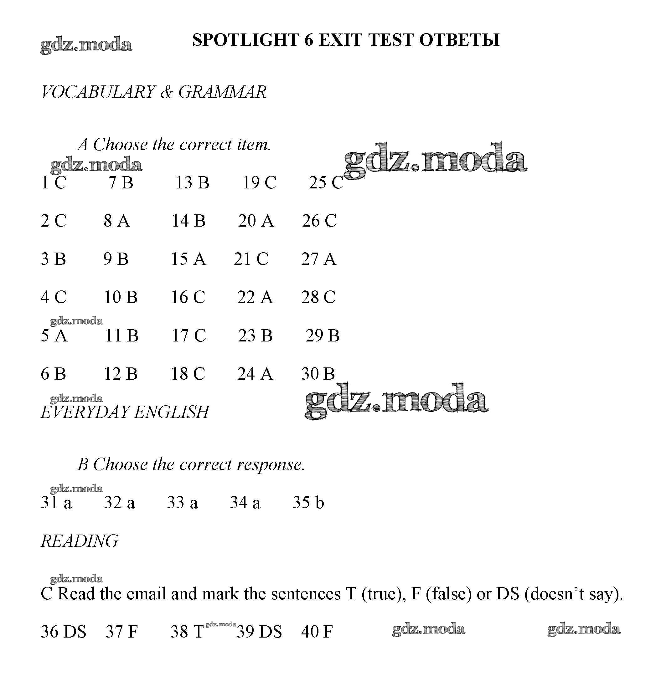 ГДЗ решение к заданию № Exit Английский язык 6 класс контрольные задания Ваулина Spotlight Просвещение 2017 ФГОС бесплатно на гдз.мода!