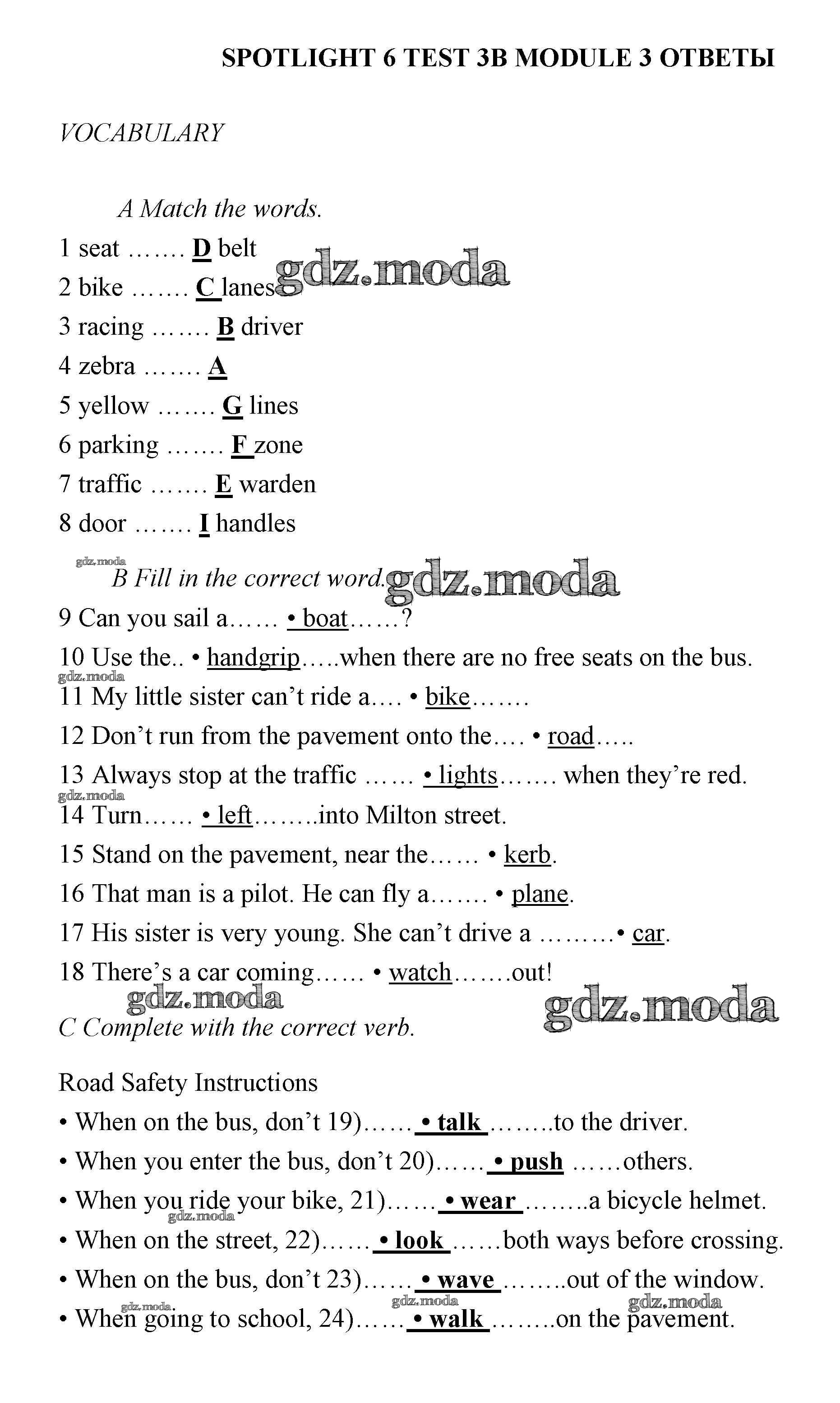 ГДЗ решение к заданию № 3В Английский язык 6 класс контрольные задания Ваулина Spotlight Просвещение 2017 ФГОС бесплатно на гдз.мода!