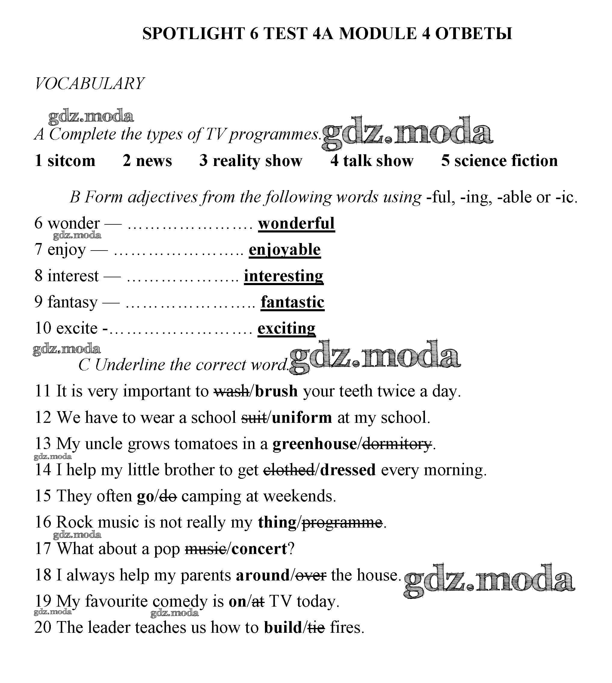 ГДЗ решение к заданию № 4А Английский язык 6 класс контрольные задания Ваулина Spotlight Просвещение 2017 ФГОС бесплатно на гдз.мода!