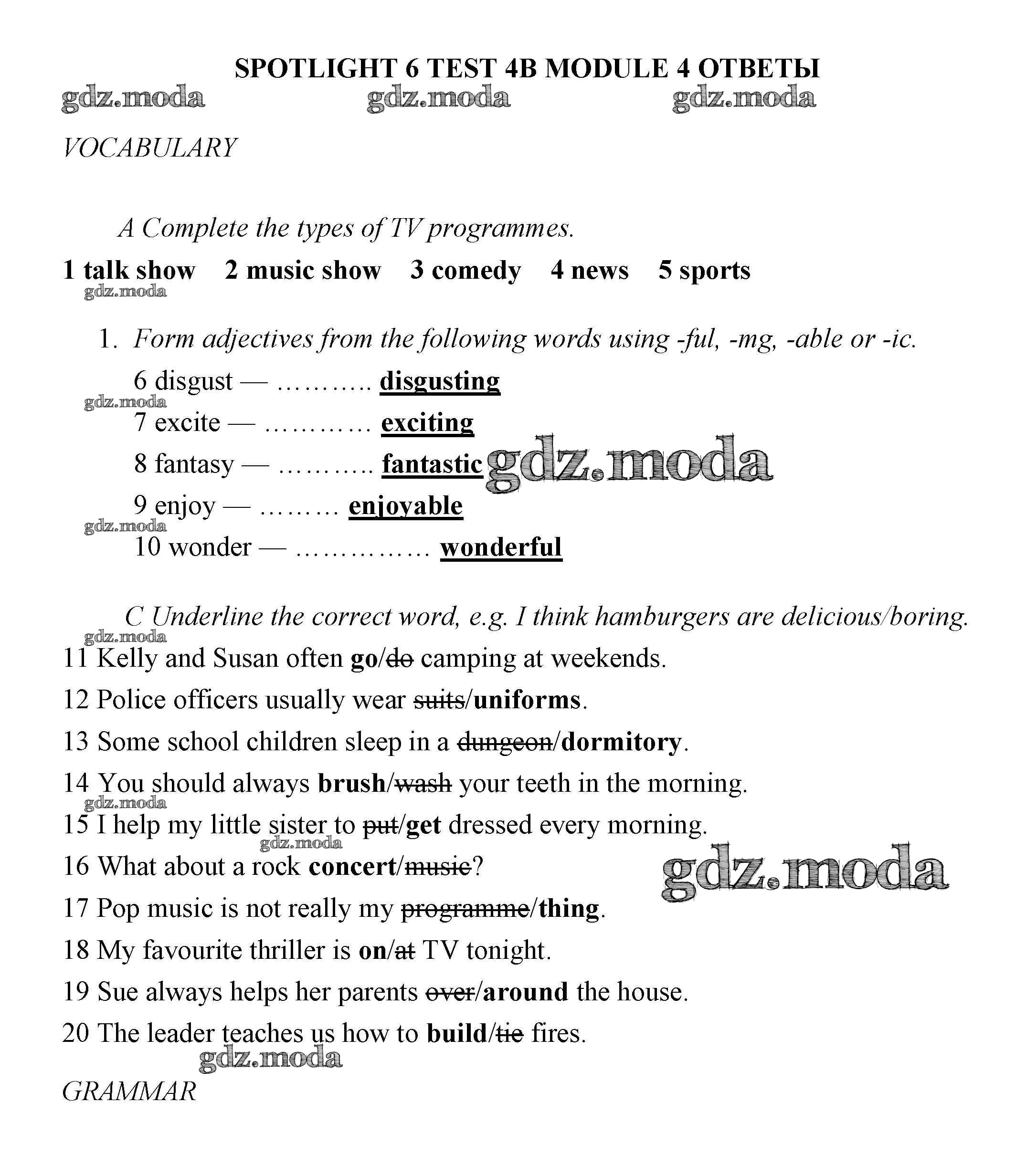 ГДЗ решение к заданию № 4В Английский язык 6 класс контрольные задания Ваулина Spotlight Просвещение 2017 ФГОС бесплатно на гдз.мода!