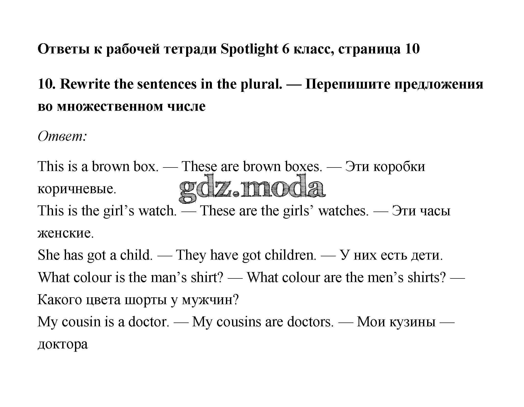 ОТВЕТ на задание № 10 Рабочая тетрадь по Английскому языку 6 класс Эванс Spotlight
