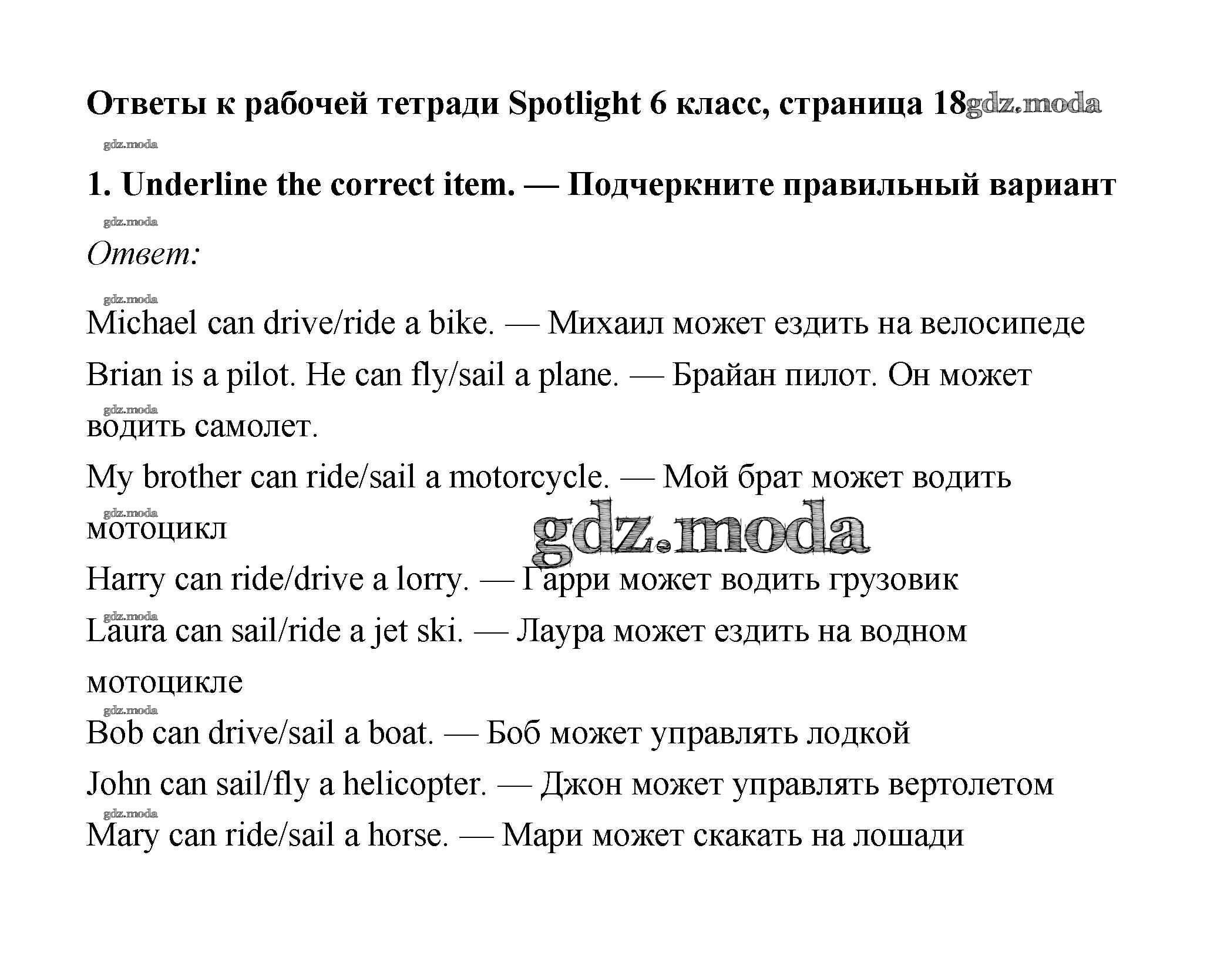 ОТВЕТ на задание № 18 Рабочая тетрадь по Английскому языку 6 класс Эванс Spotlight