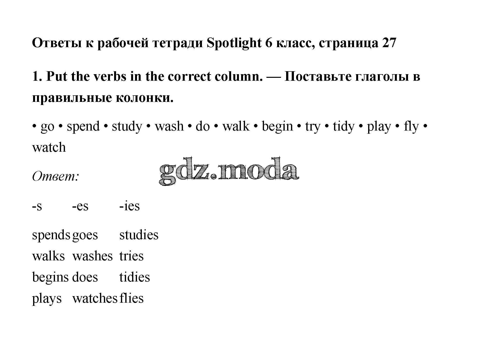 ОТВЕТ на задание № 27 Рабочая тетрадь по Английскому языку 6 класс Эванс Spotlight