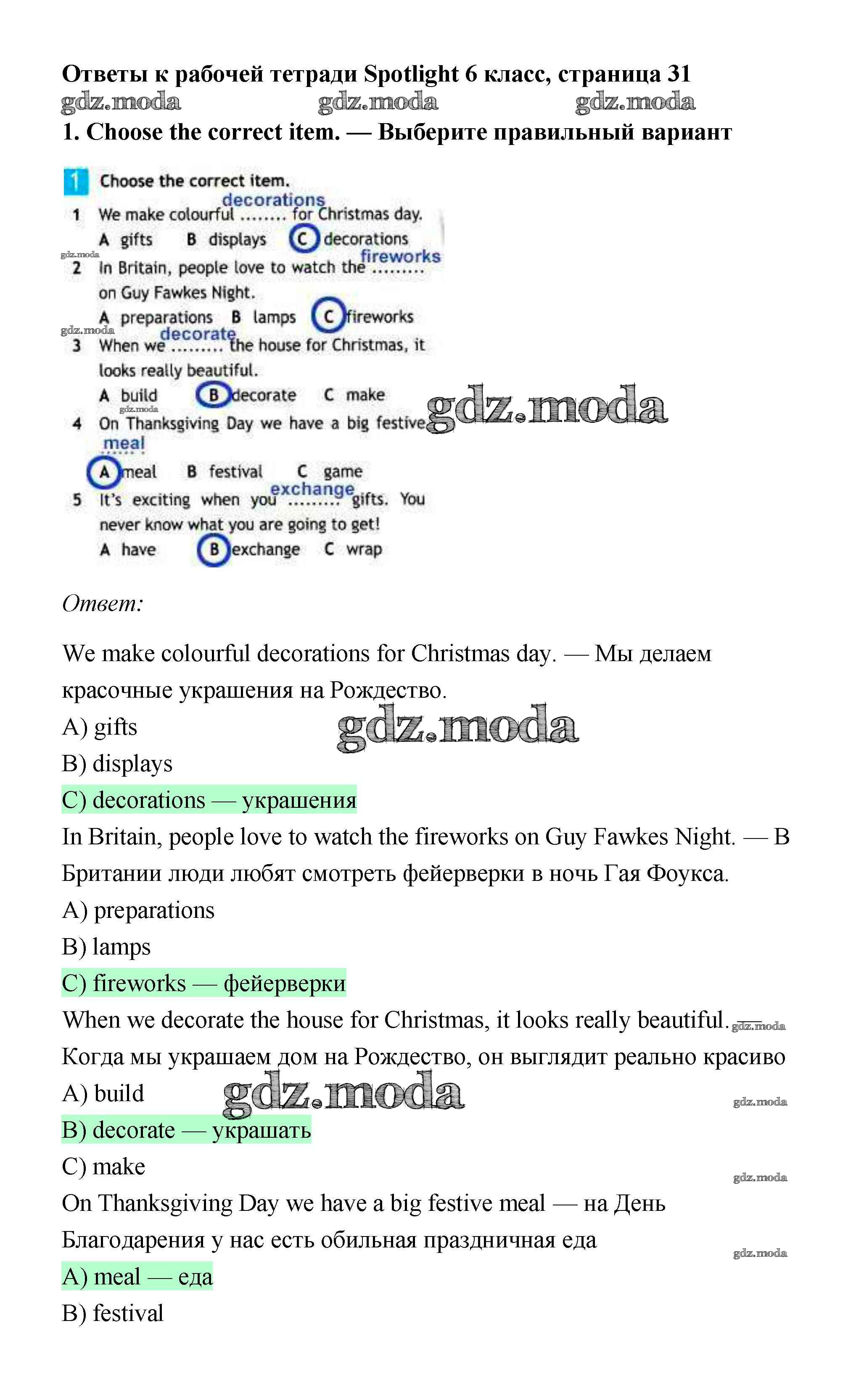 ОТВЕТ на задание № 31 Рабочая тетрадь по Английскому языку 6 класс Эванс Spotlight
