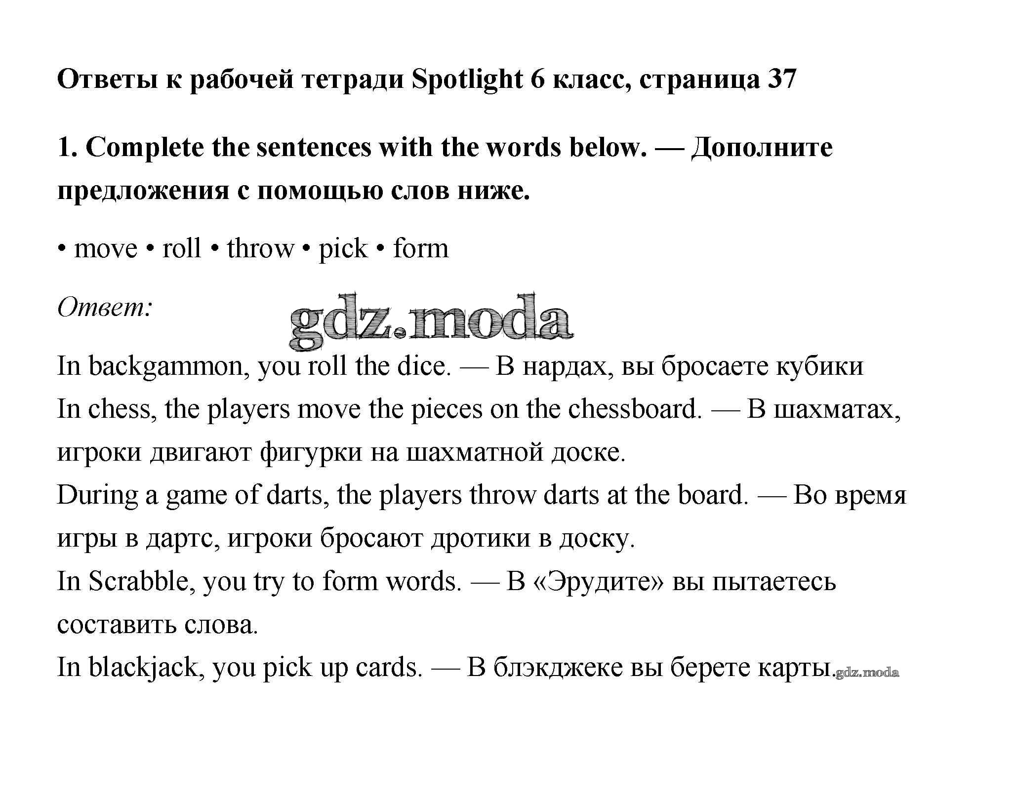 ОТВЕТ на задание № 37 Рабочая тетрадь по Английскому языку 6 класс Эванс Spotlight