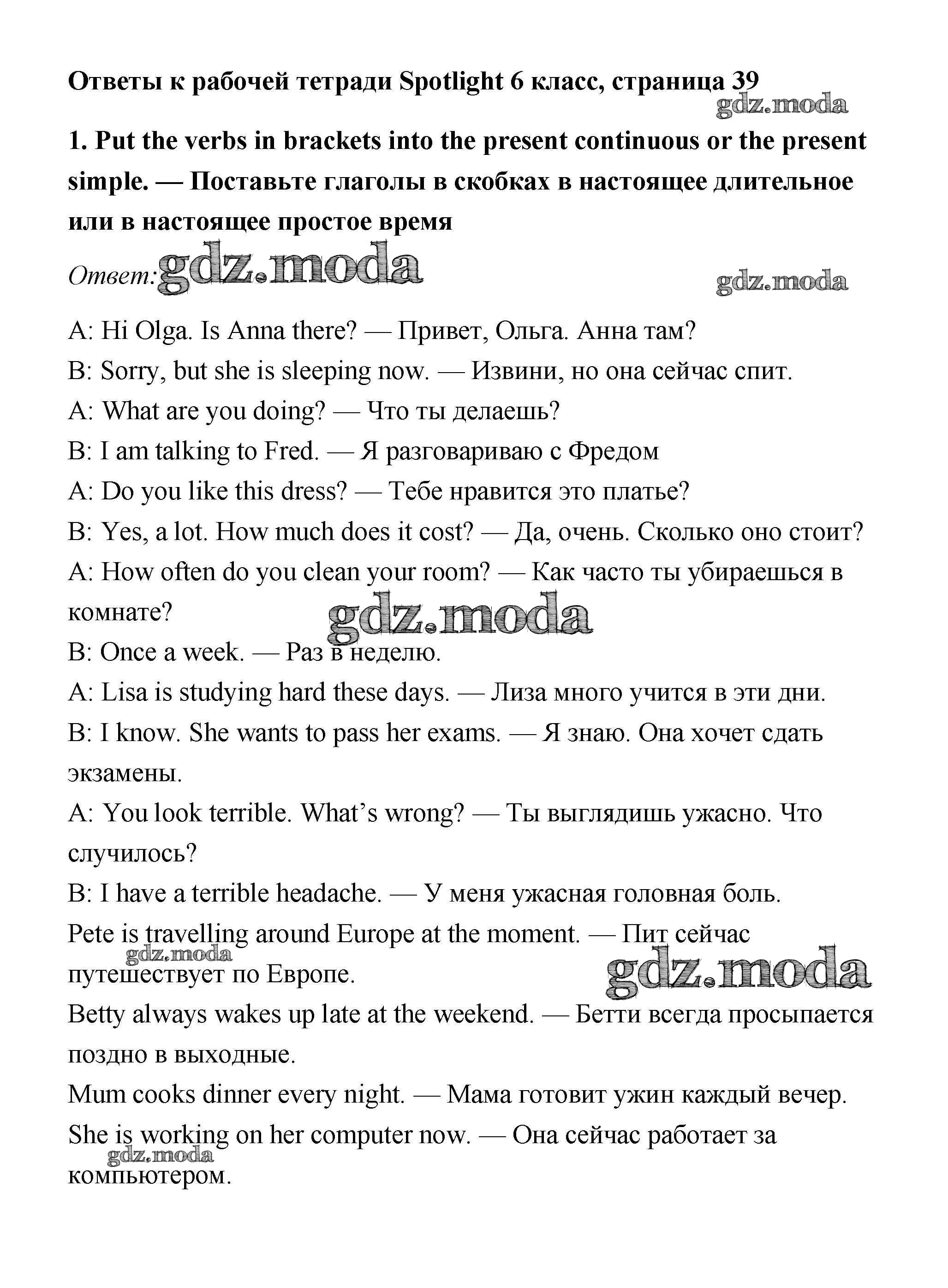 ОТВЕТ на задание № 39 Рабочая тетрадь по Английскому языку 6 класс Эванс Spotlight