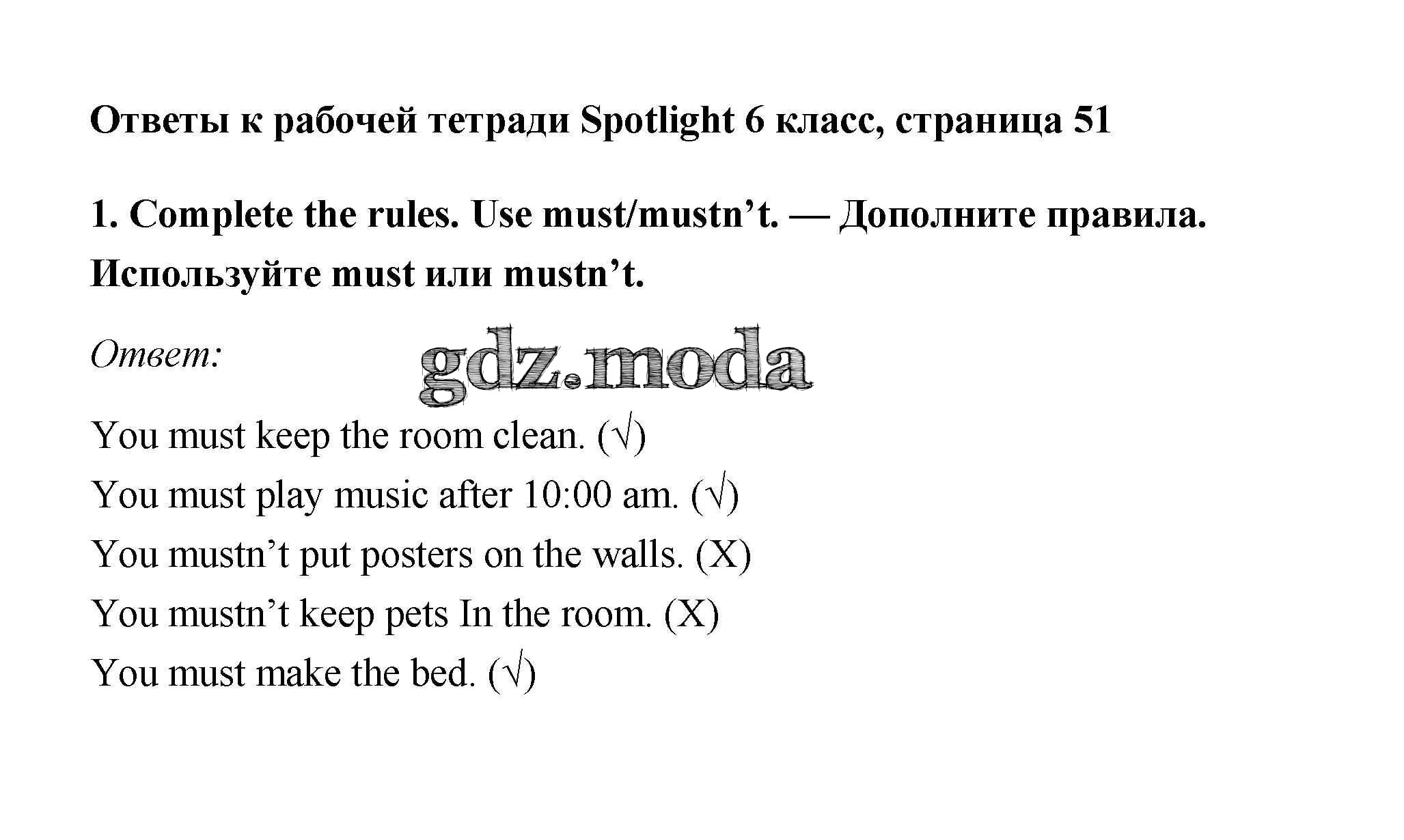 ОТВЕТ на задание № 51 Рабочая тетрадь по Английскому языку 6 класс Эванс Spotlight