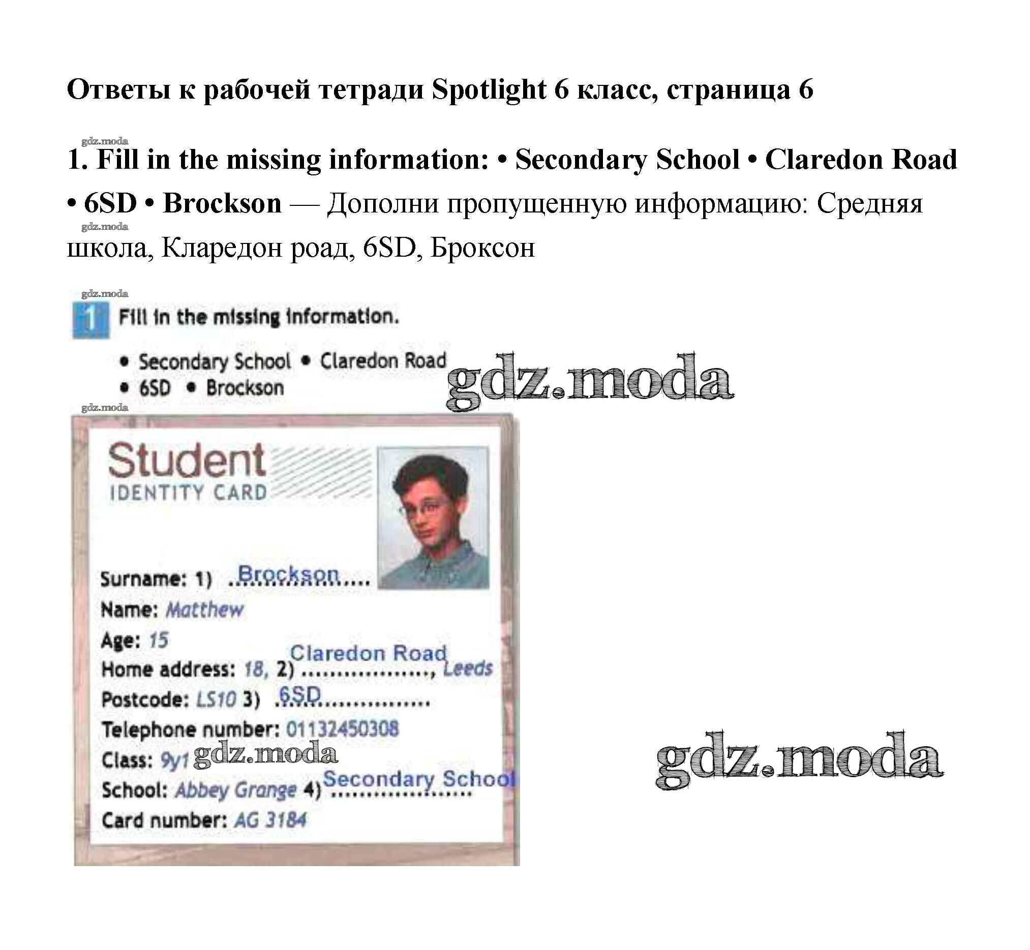 ОТВЕТ на задание № 6 Рабочая тетрадь по Английскому языку 6 класс Эванс Spotlight