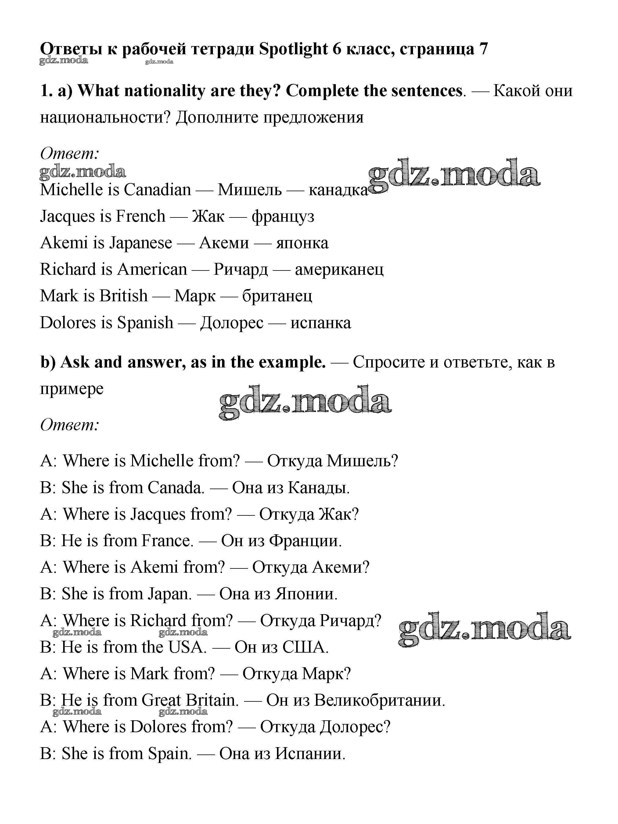 ГДЗ решение к заданию № 7 Английский 6 класс рабочая тетрадь Ваулина (2011) Просвещение 2011 бесплатно на гдз.мода!