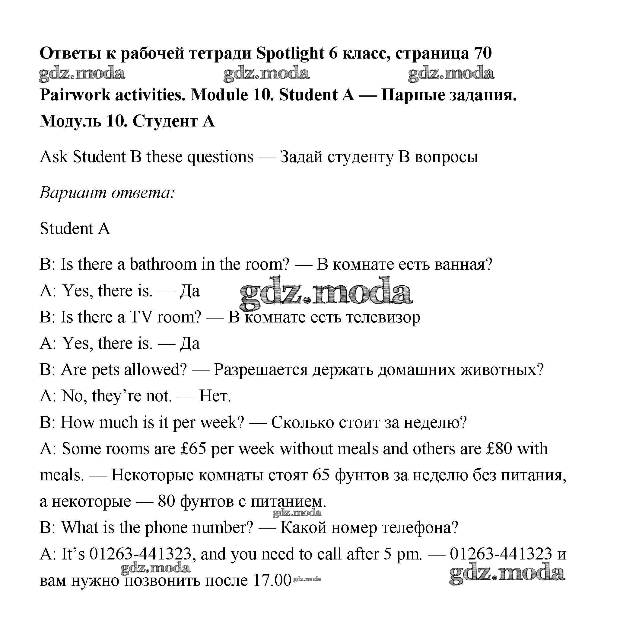 ОТВЕТ на задание № 70 Рабочая тетрадь по Английскому языку 6 класс Эванс Spotlight