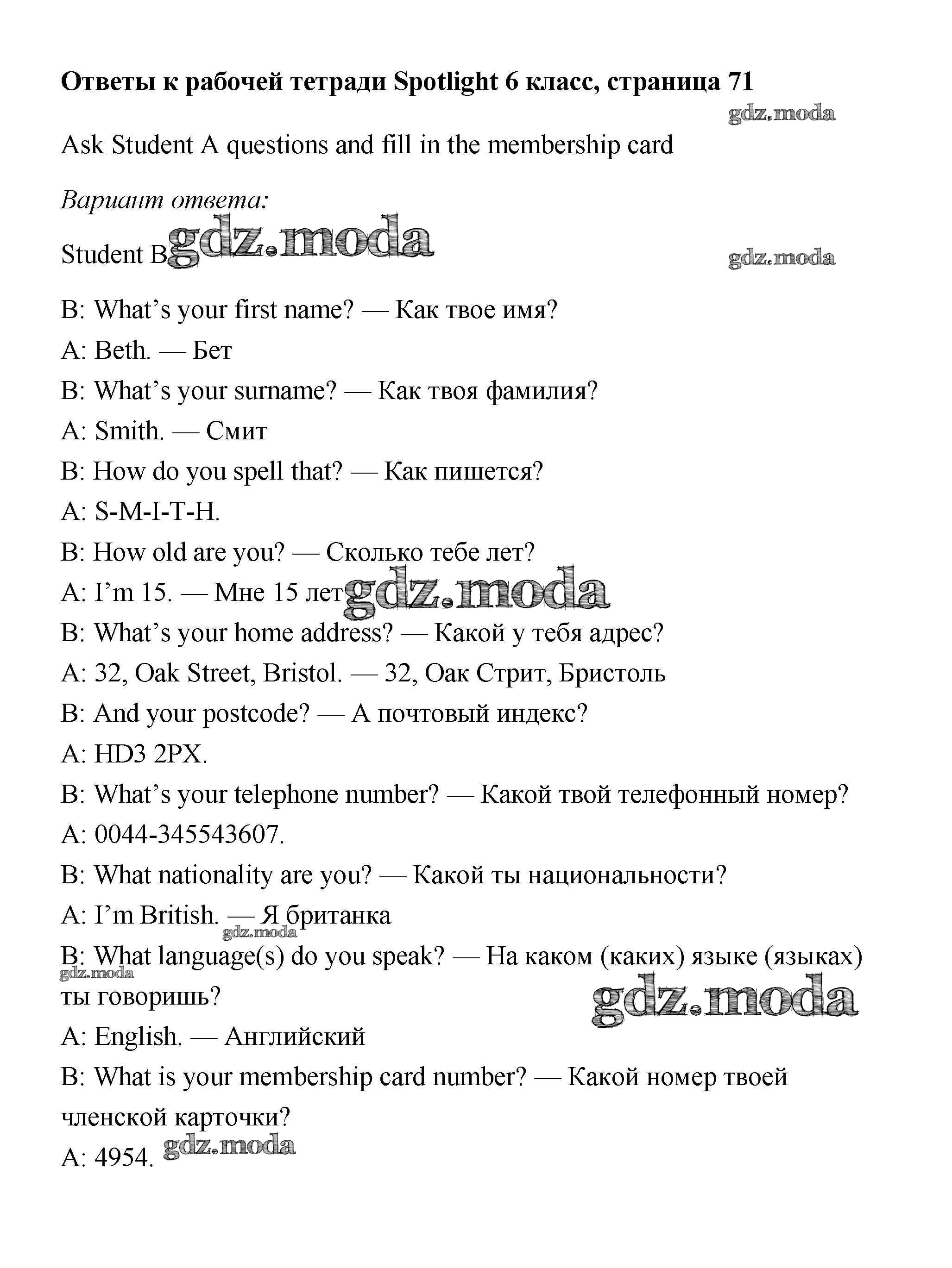 ОТВЕТ на задание № 71 Рабочая тетрадь по Английскому языку 6 класс Эванс Spotlight