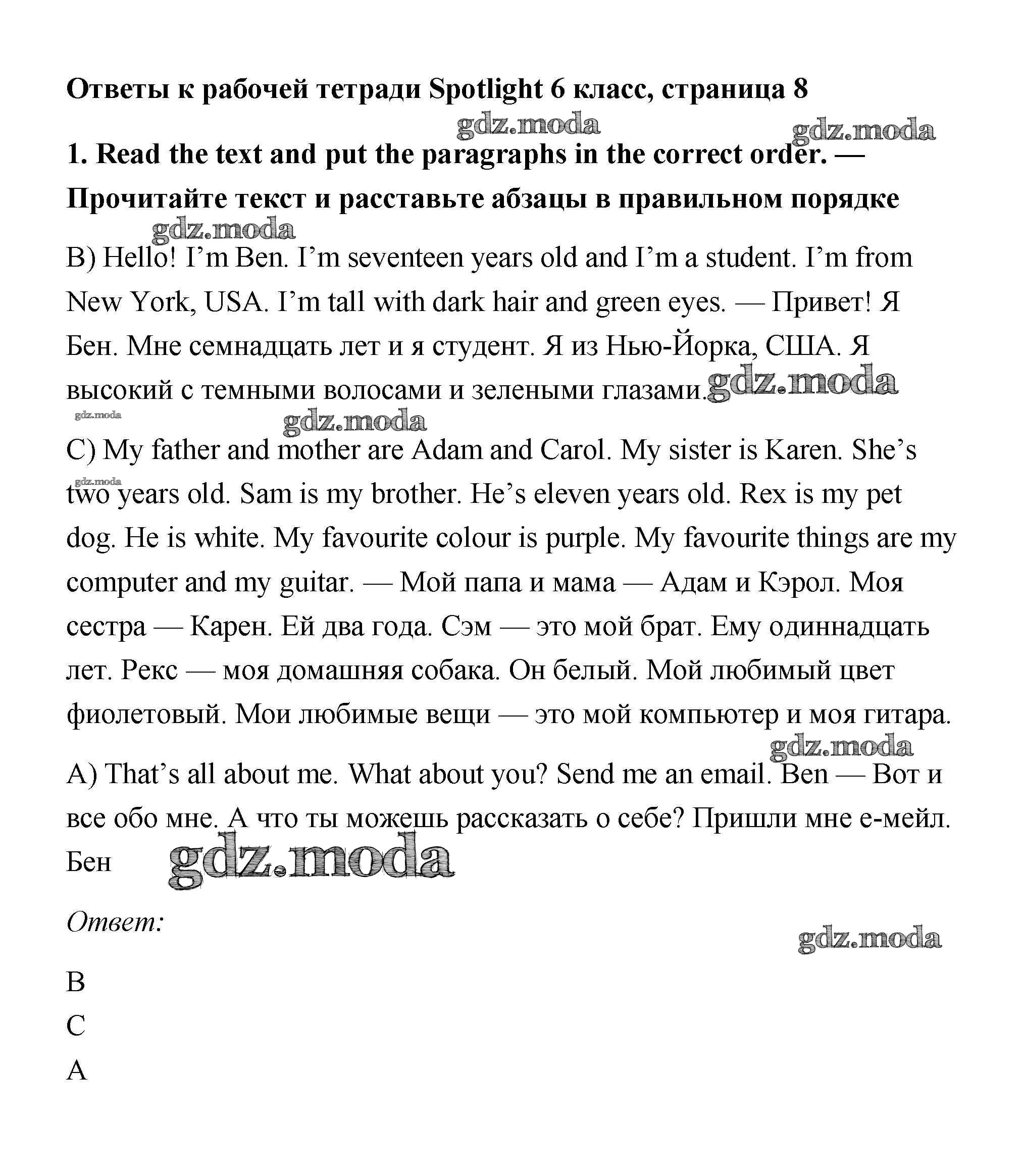 ГДЗ решение к заданию № 8 Английский 6 класс рабочая тетрадь Ваулина (2011) Просвещение 2011 бесплатно на гдз.мода!