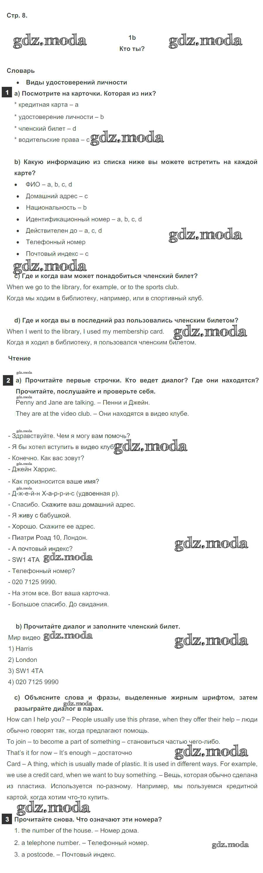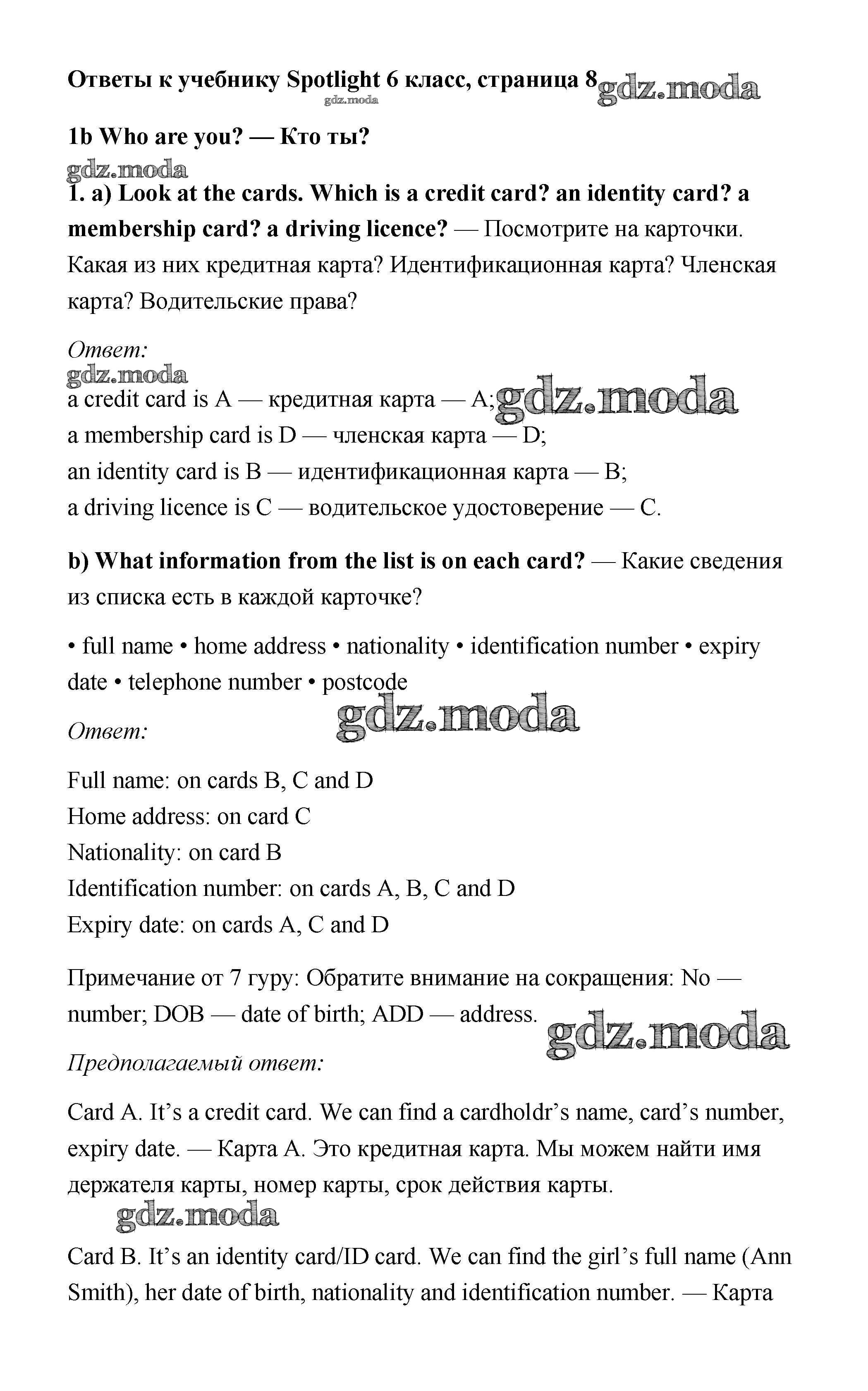 ОТВЕТ на задание № стр. 8 Учебник по Английскому языку 6 класс Ваулина Spotlight