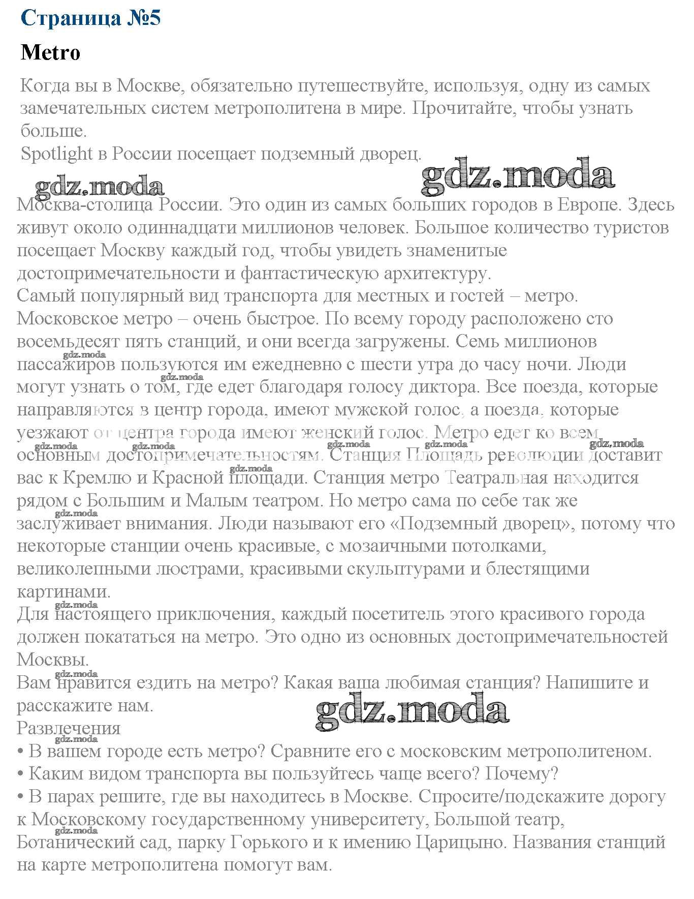 ОТВЕТ на задание № 5 Учебник по Английскому языку 6 класс Ваулина Spotlight