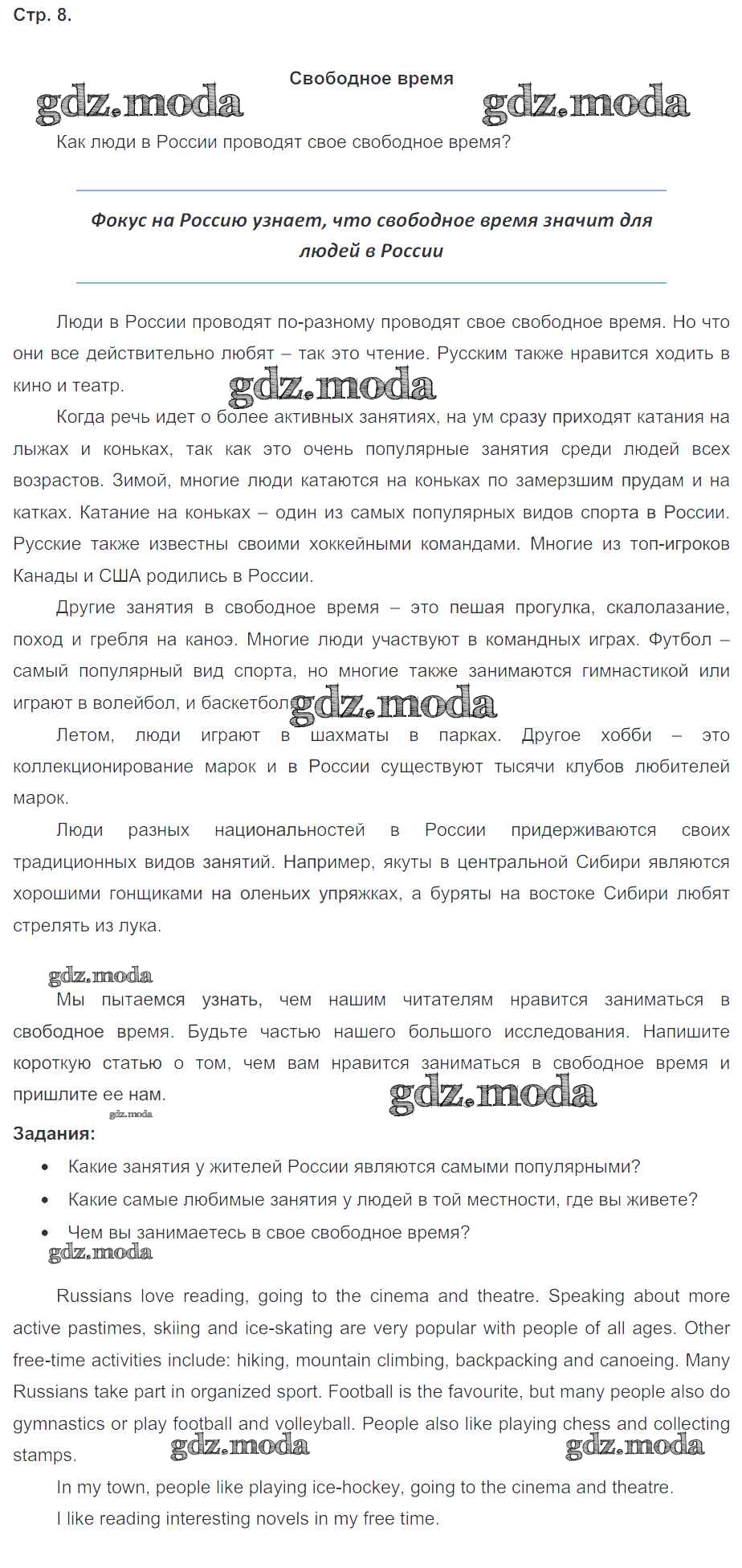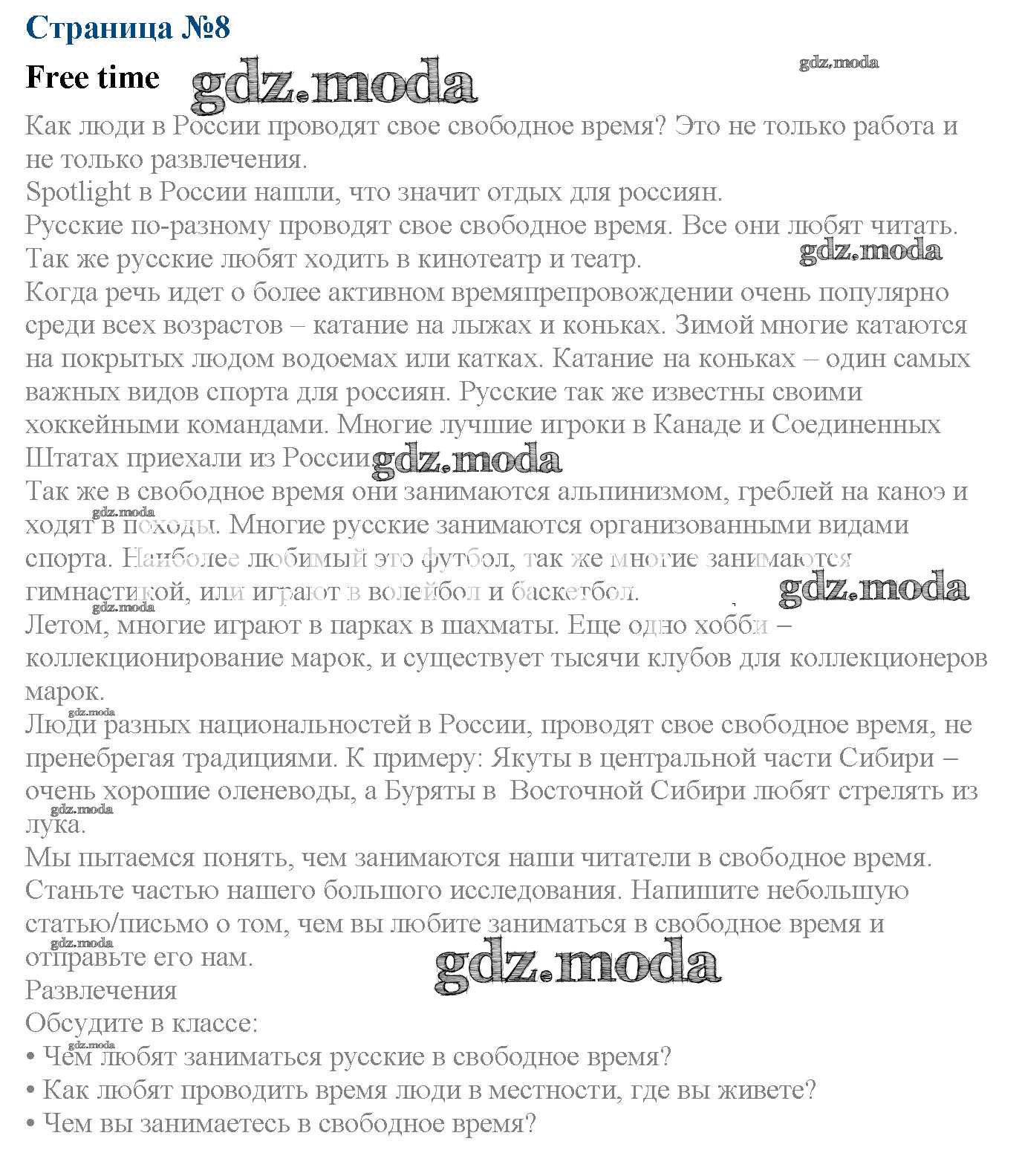 ОТВЕТ на задание № стр. 8 Учебник по Английскому языку 6 класс Ваулина Spotlight