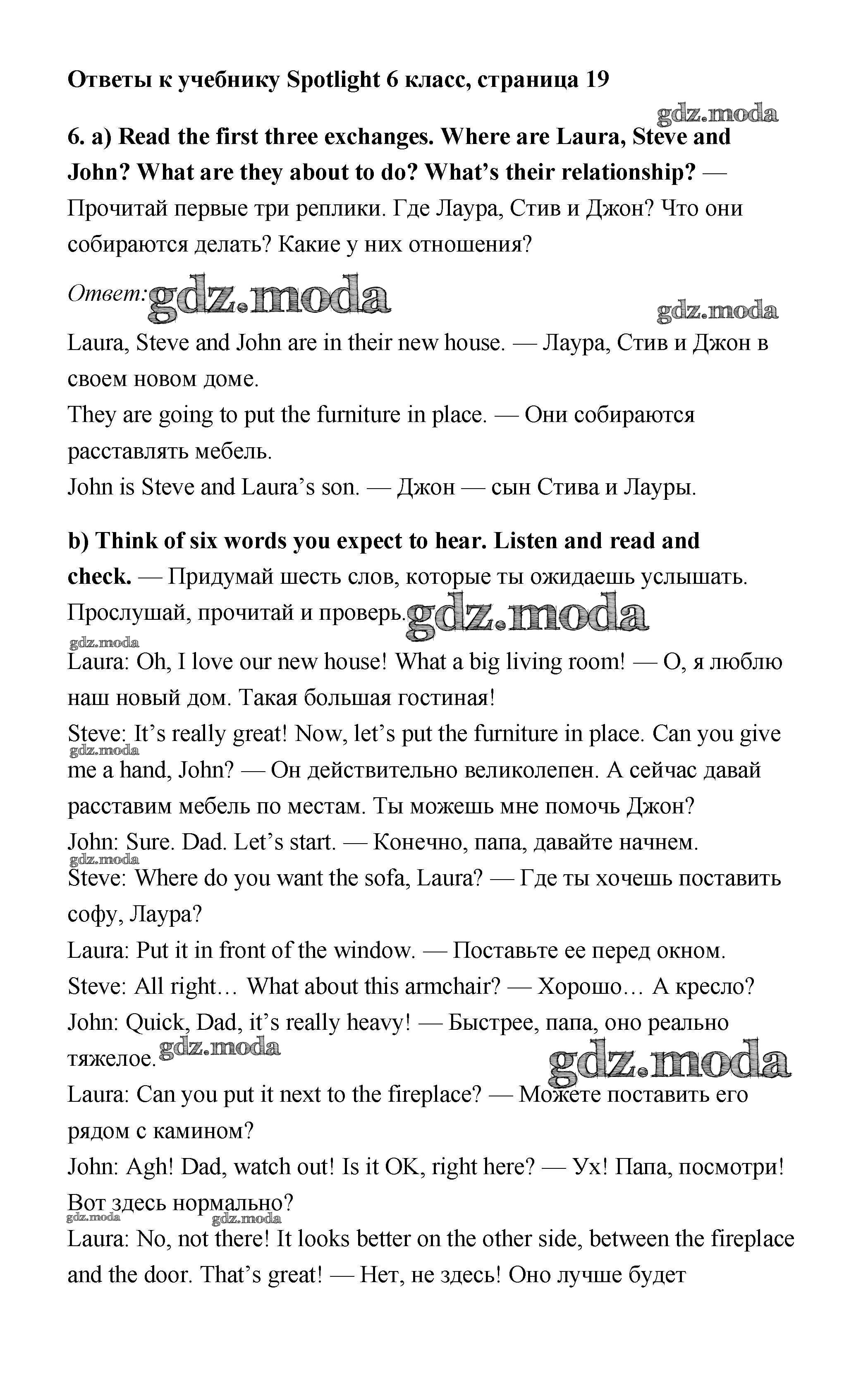 ОТВЕТ на задание № 19 Учебник по Английскому языку 6 класс Ваулина Spotlight