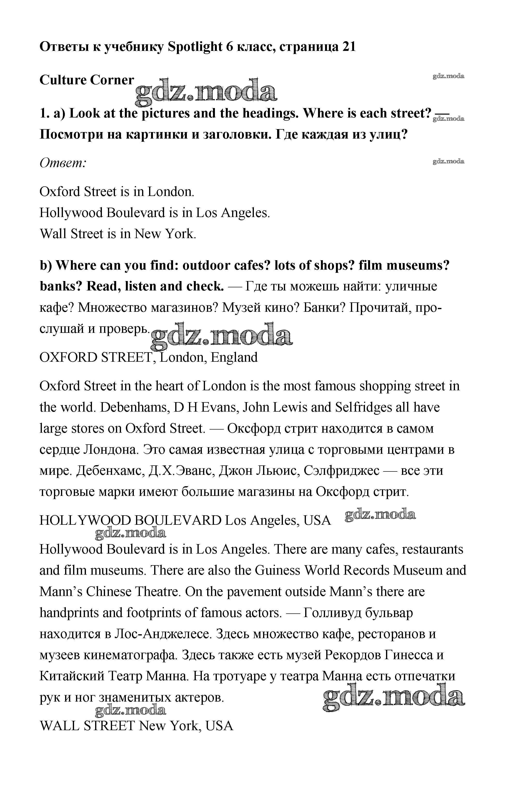ОТВЕТ на задание № 21 Учебник по Английскому языку 6 класс Ваулина Spotlight