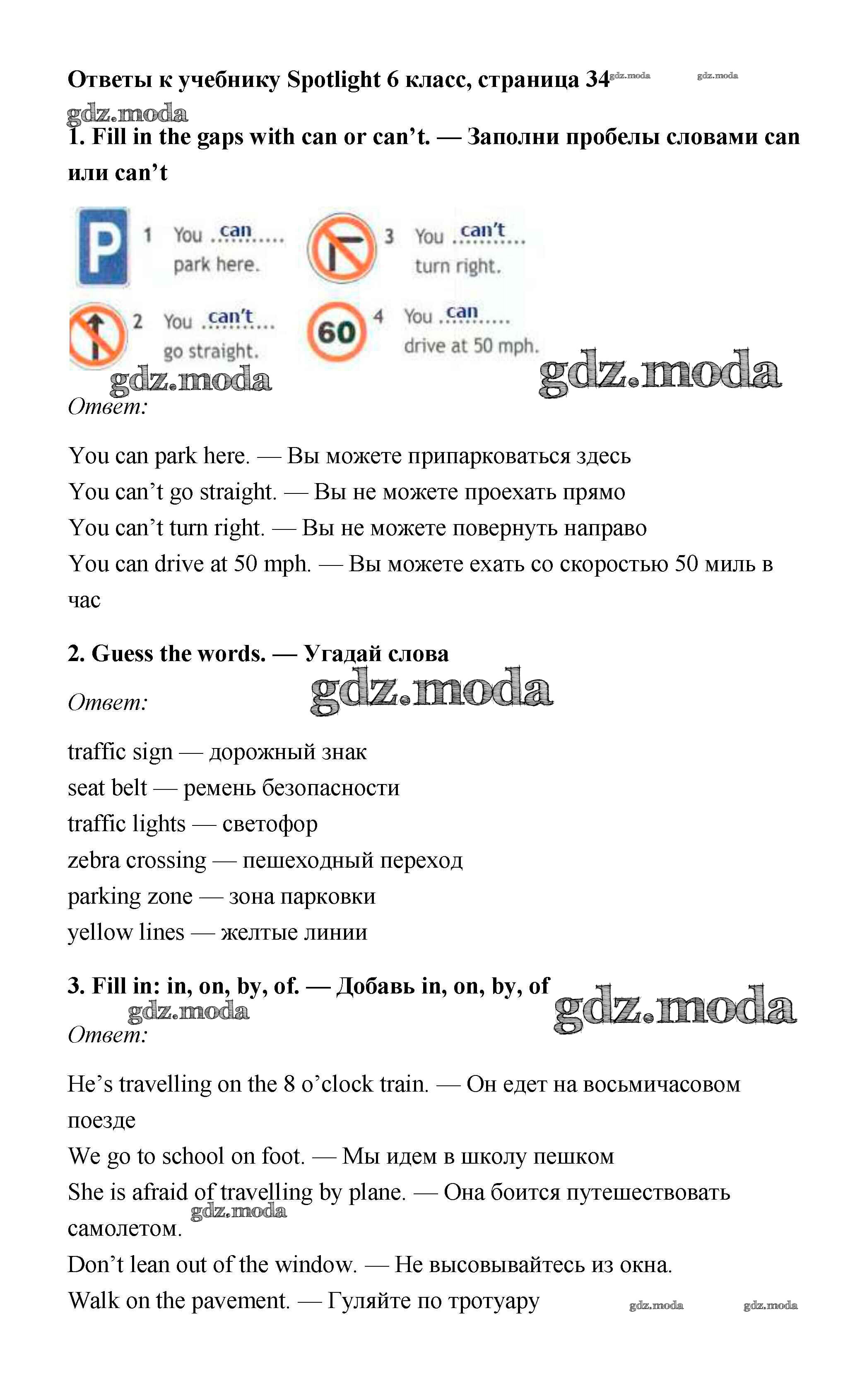 ОТВЕТ на задание № стр. 34 Учебник по Английскому языку 6 класс Ваулина Spotlight