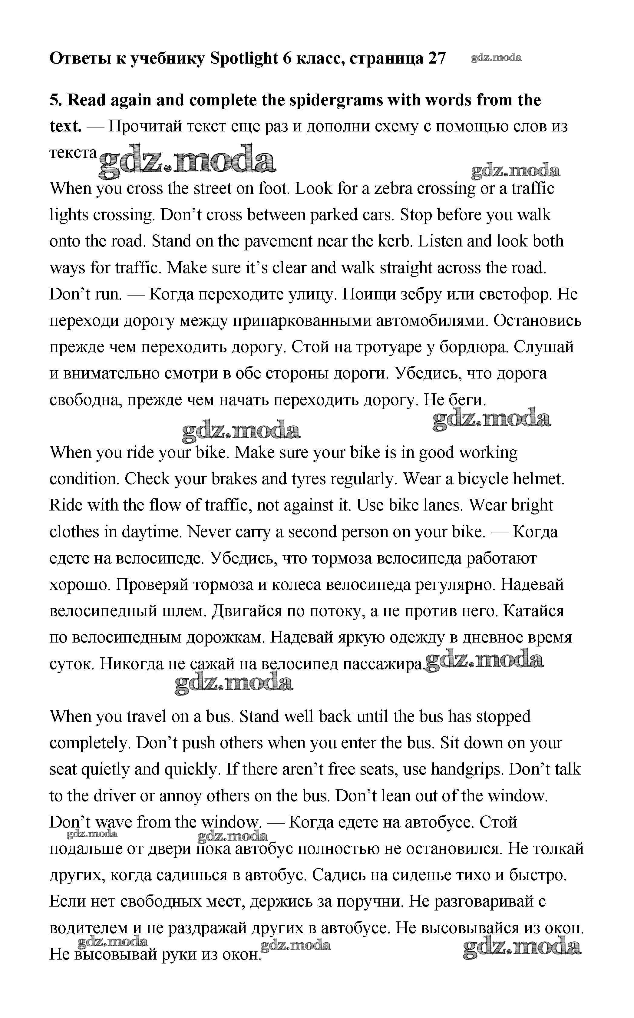 ОТВЕТ на задание № стр. 27 Учебник по Английскому языку 6 класс Ваулина Spotlight