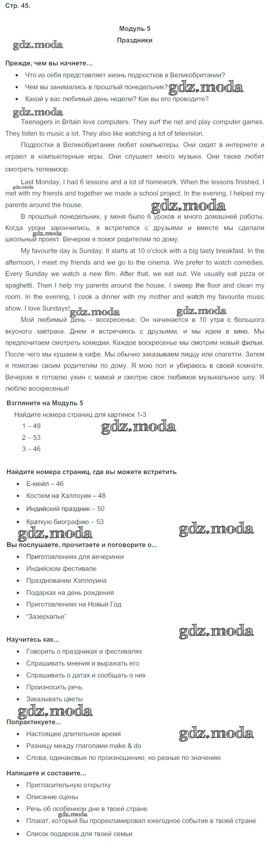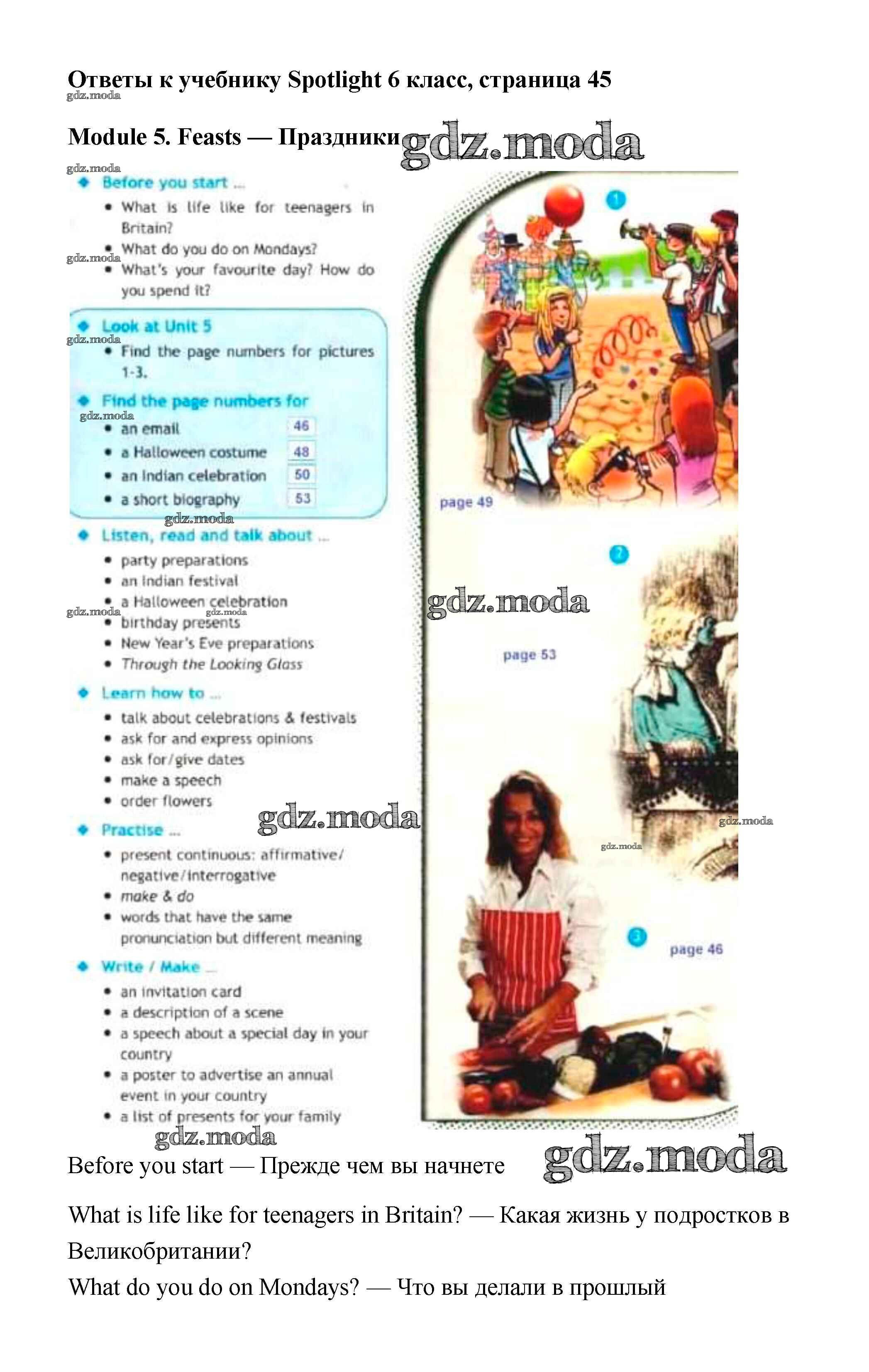 ОТВЕТ на задание № стр. 45 Учебник по Английскому языку 6 класс Ваулина Spotlight