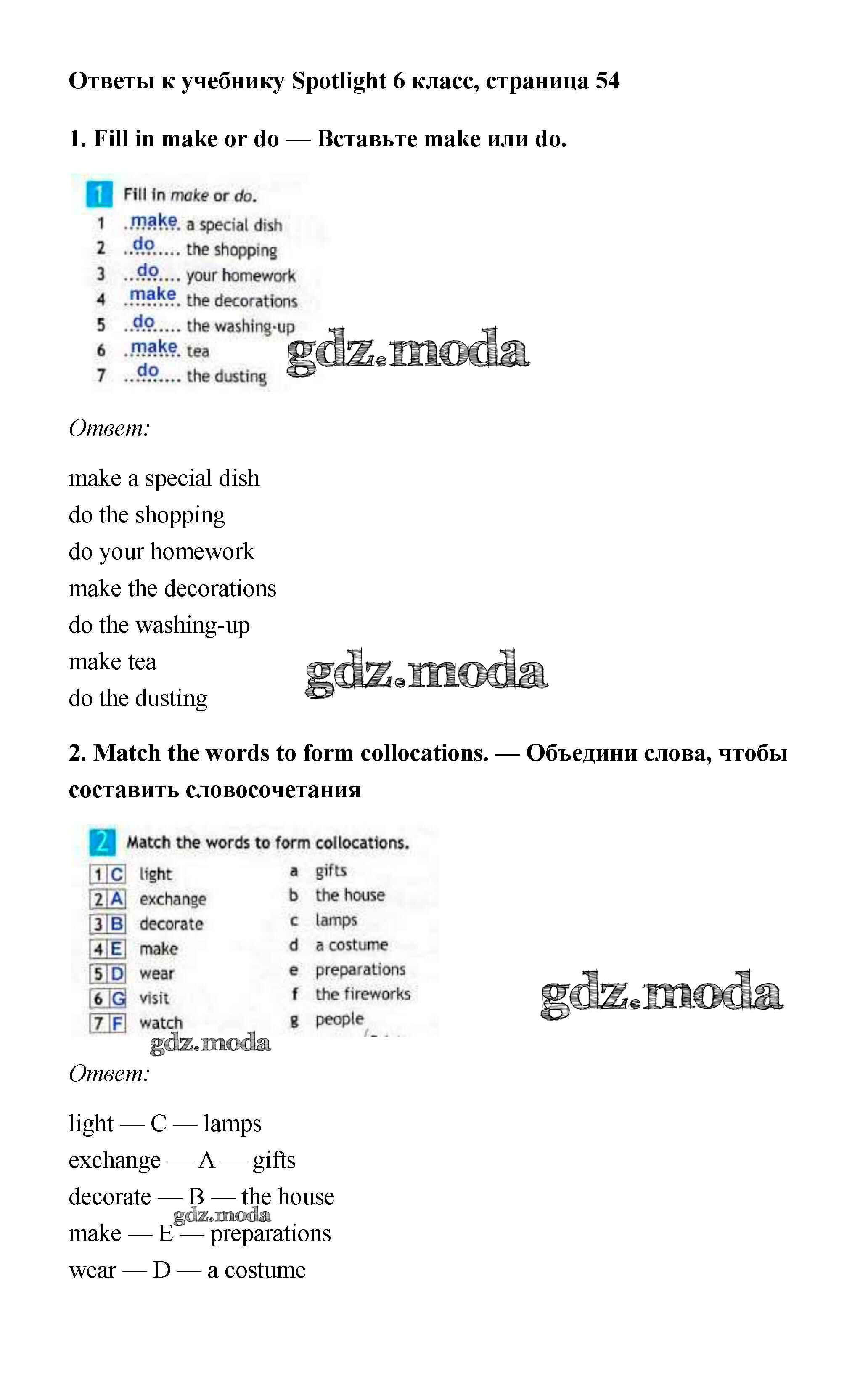 ОТВЕТ на задание № стр. 54 Учебник по Английскому языку 6 класс Ваулина Spotlight