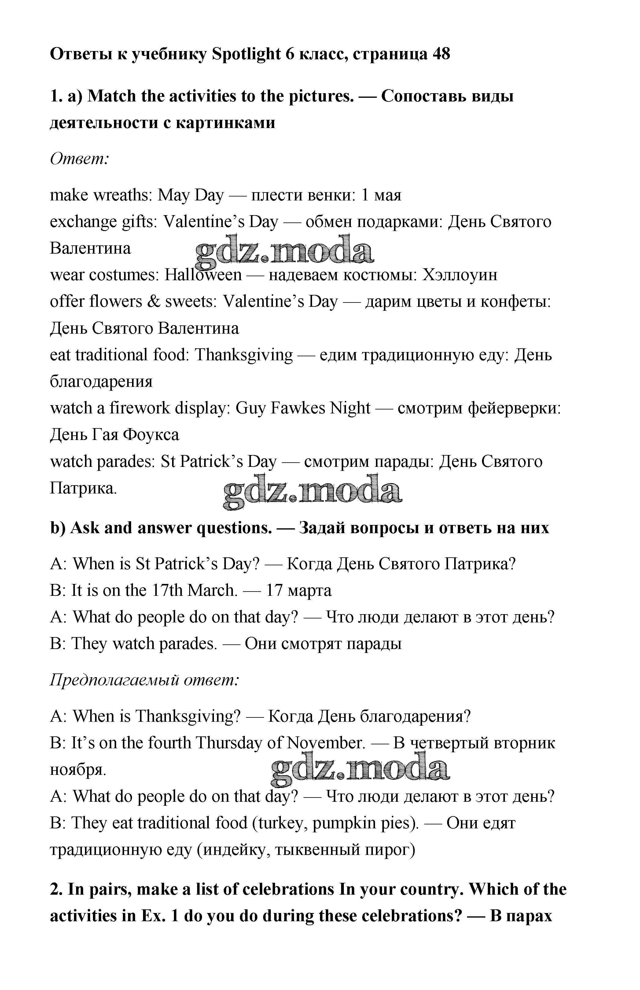 ОТВЕТ на задание № стр. 48 Учебник по Английскому языку 6 класс Ваулина Spotlight