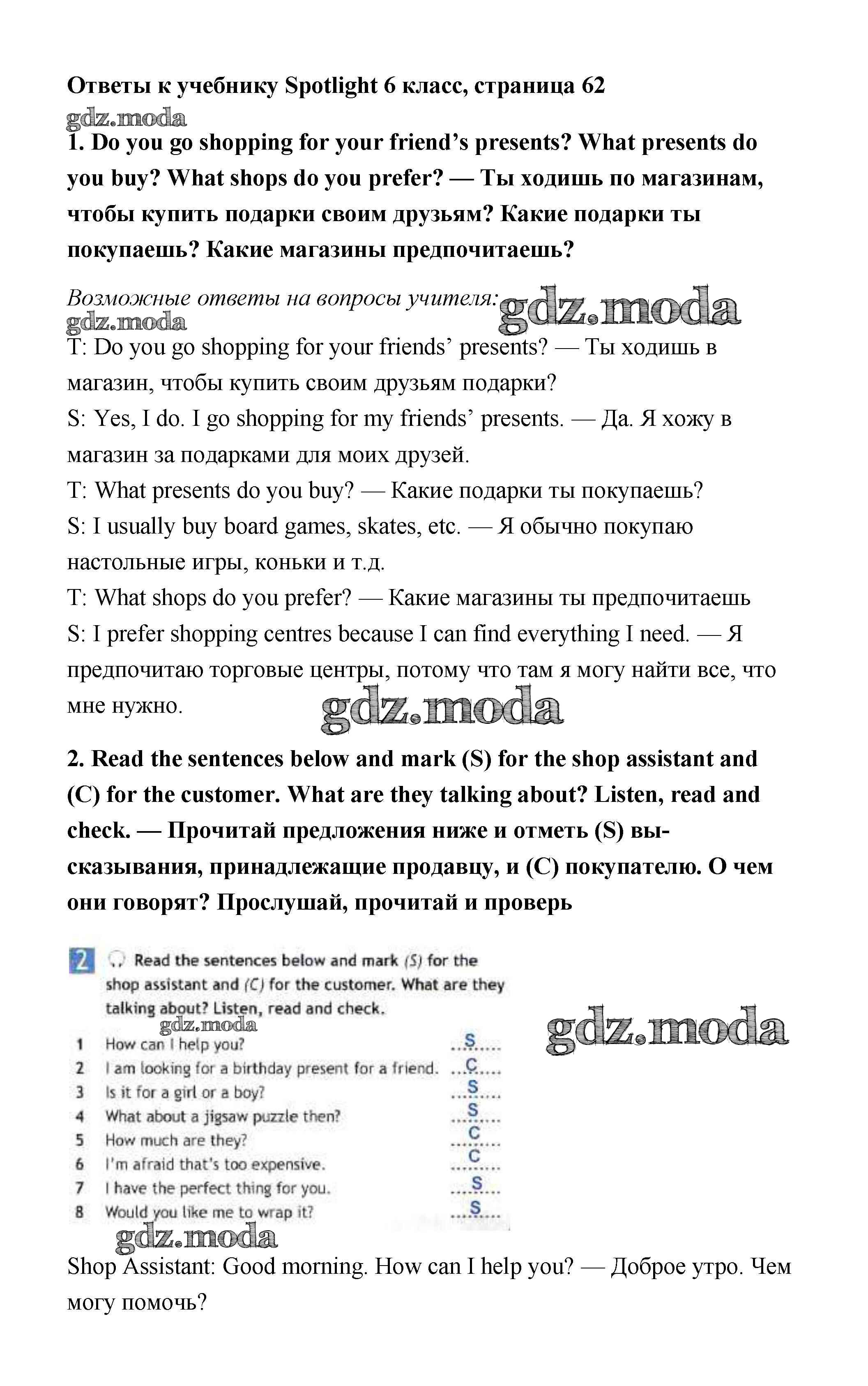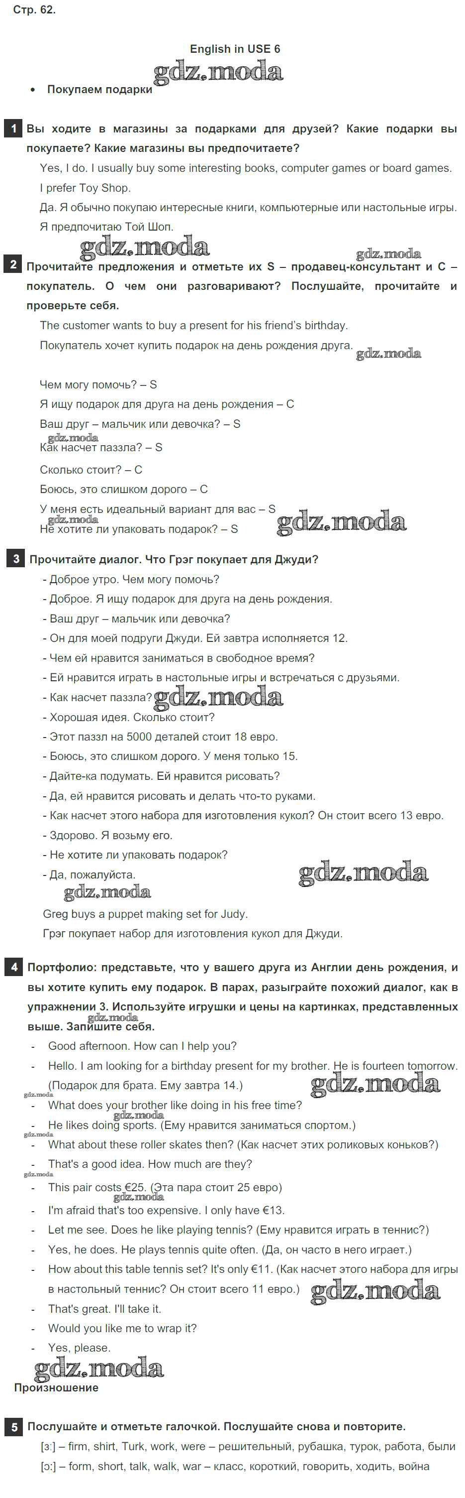 ОТВЕТ на задание № 62 Учебник по Английскому языку 6 класс Ваулина Spotlight