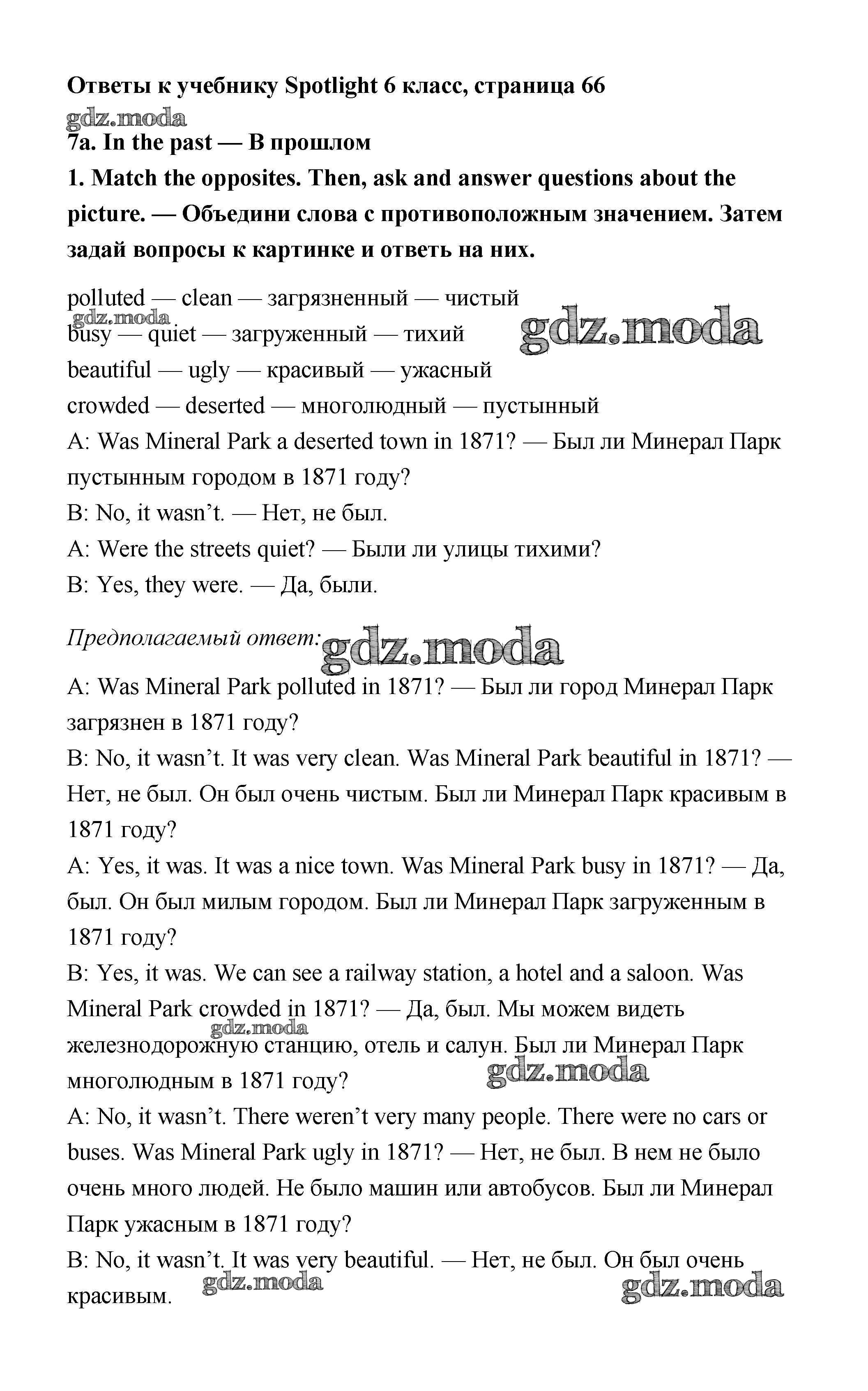 ОТВЕТ на задание № стр. 66 Учебник по Английскому языку 6 класс Ваулина Spotlight