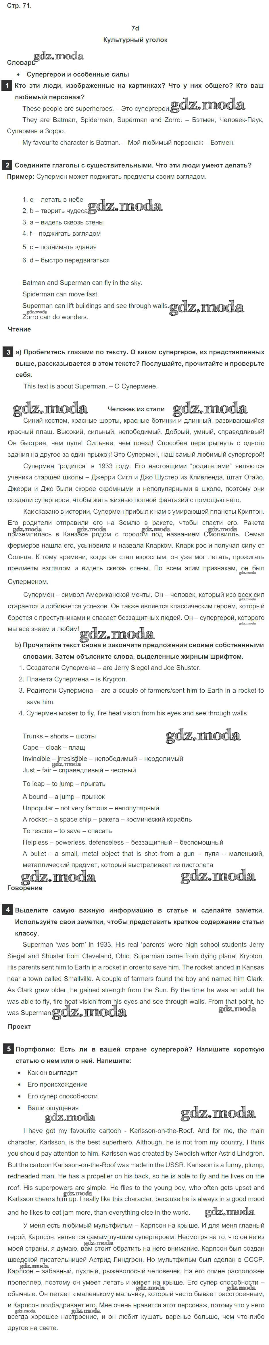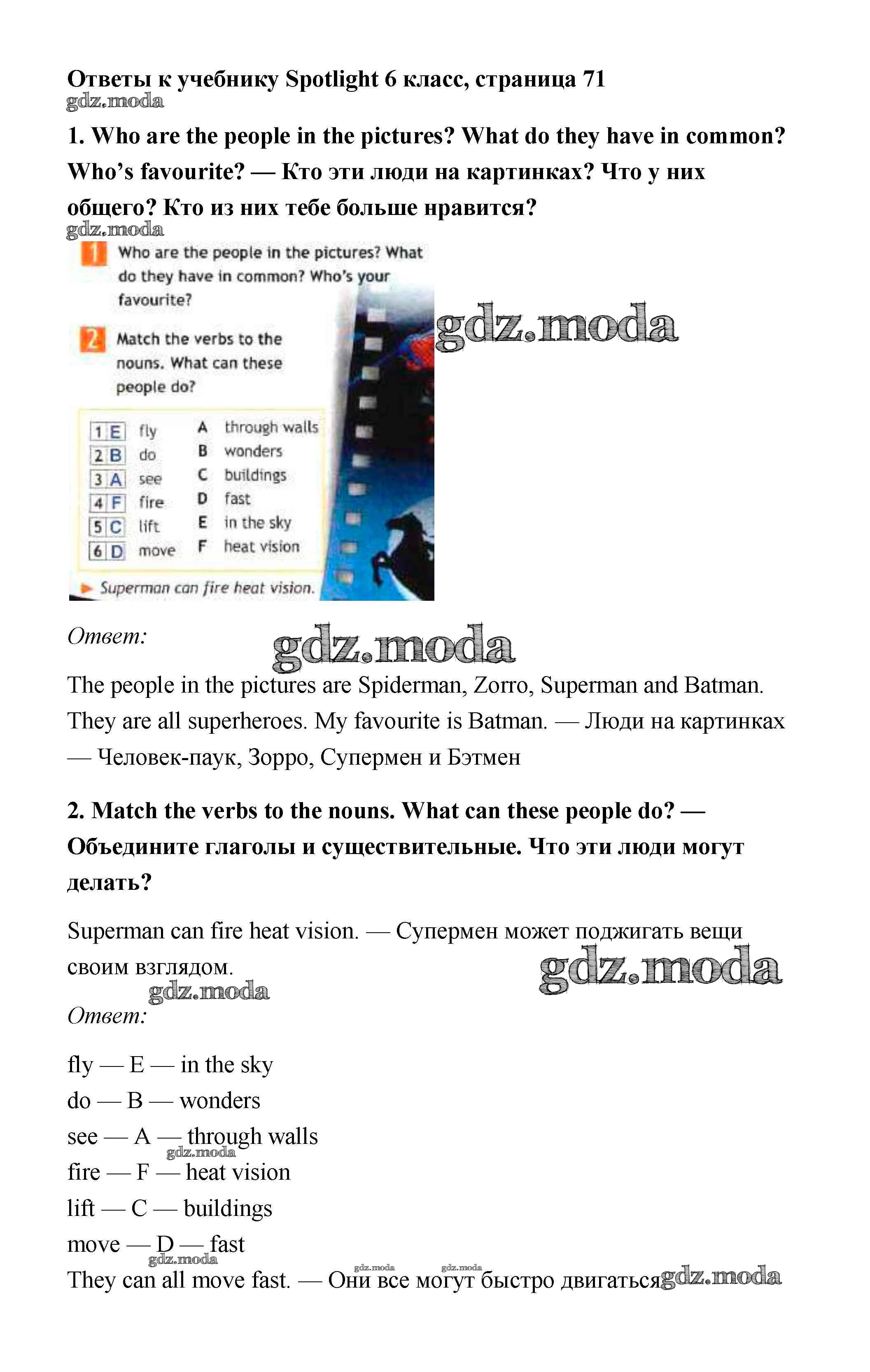 ОТВЕТ на задание № стр. 71 Учебник по Английскому языку 6 класс Ваулина Spotlight
