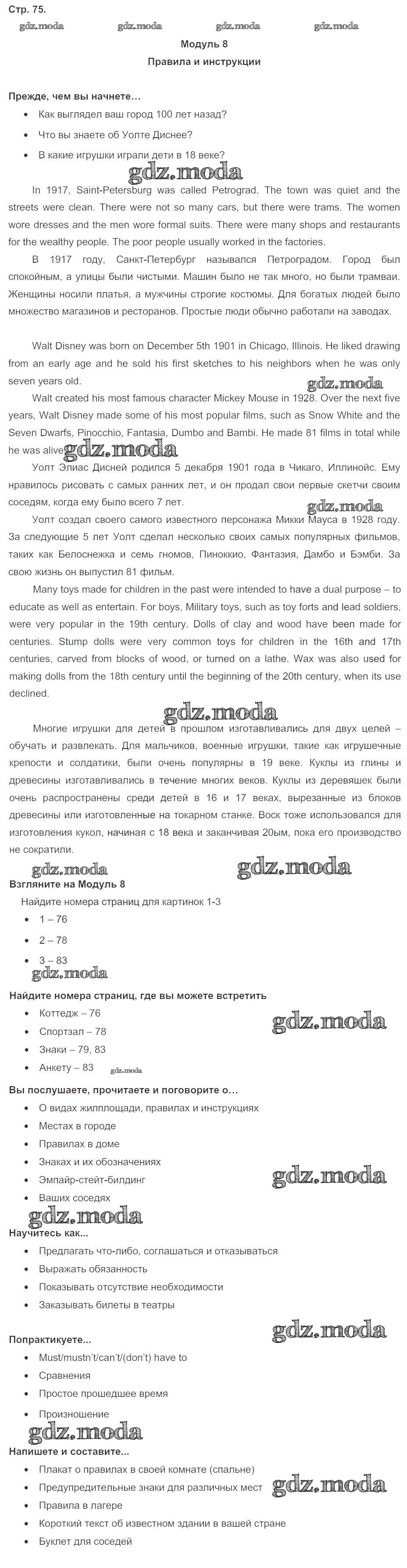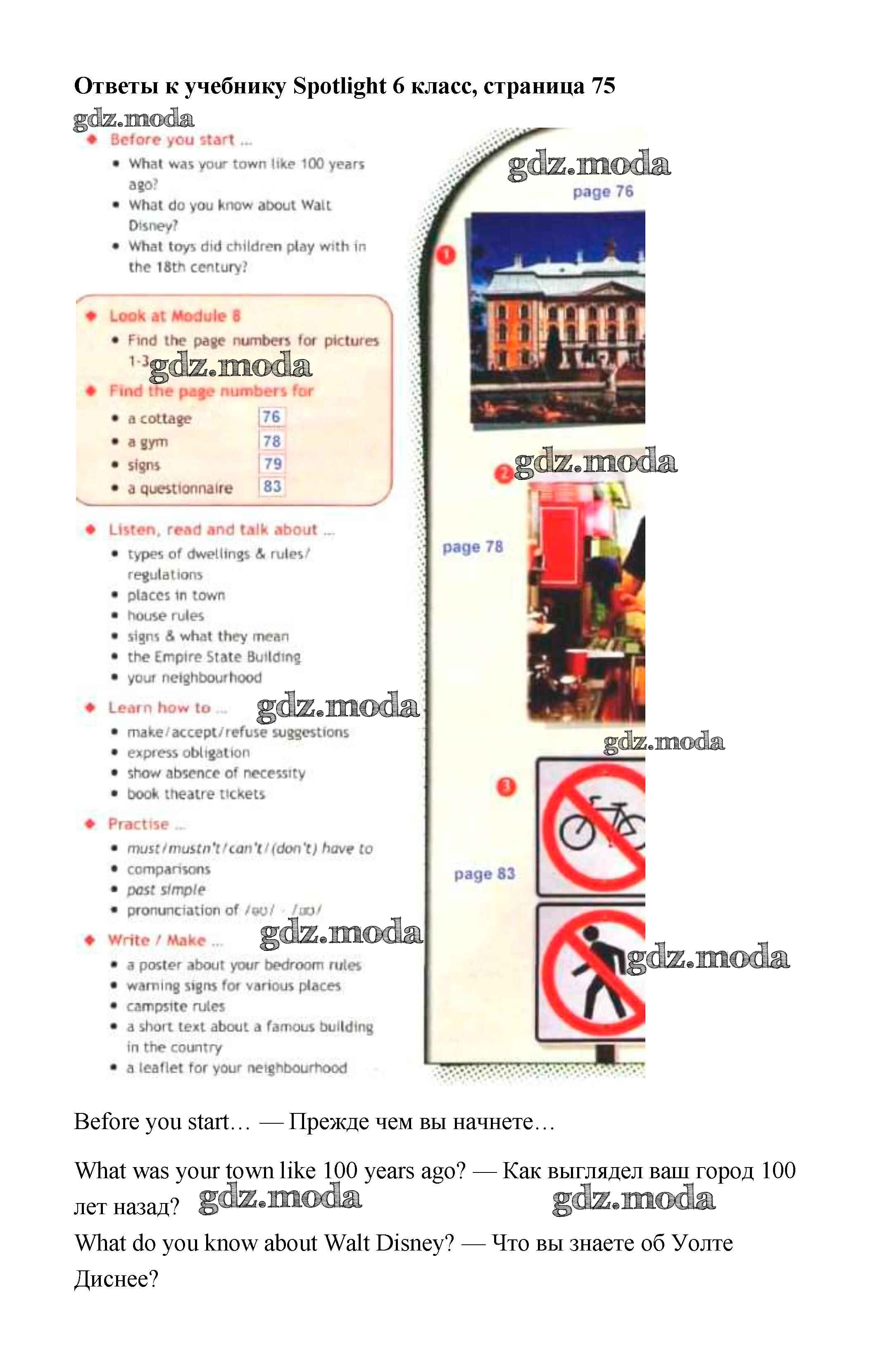 ОТВЕТ на задание № 75 Учебник по Английскому языку 6 класс Ваулина Spotlight