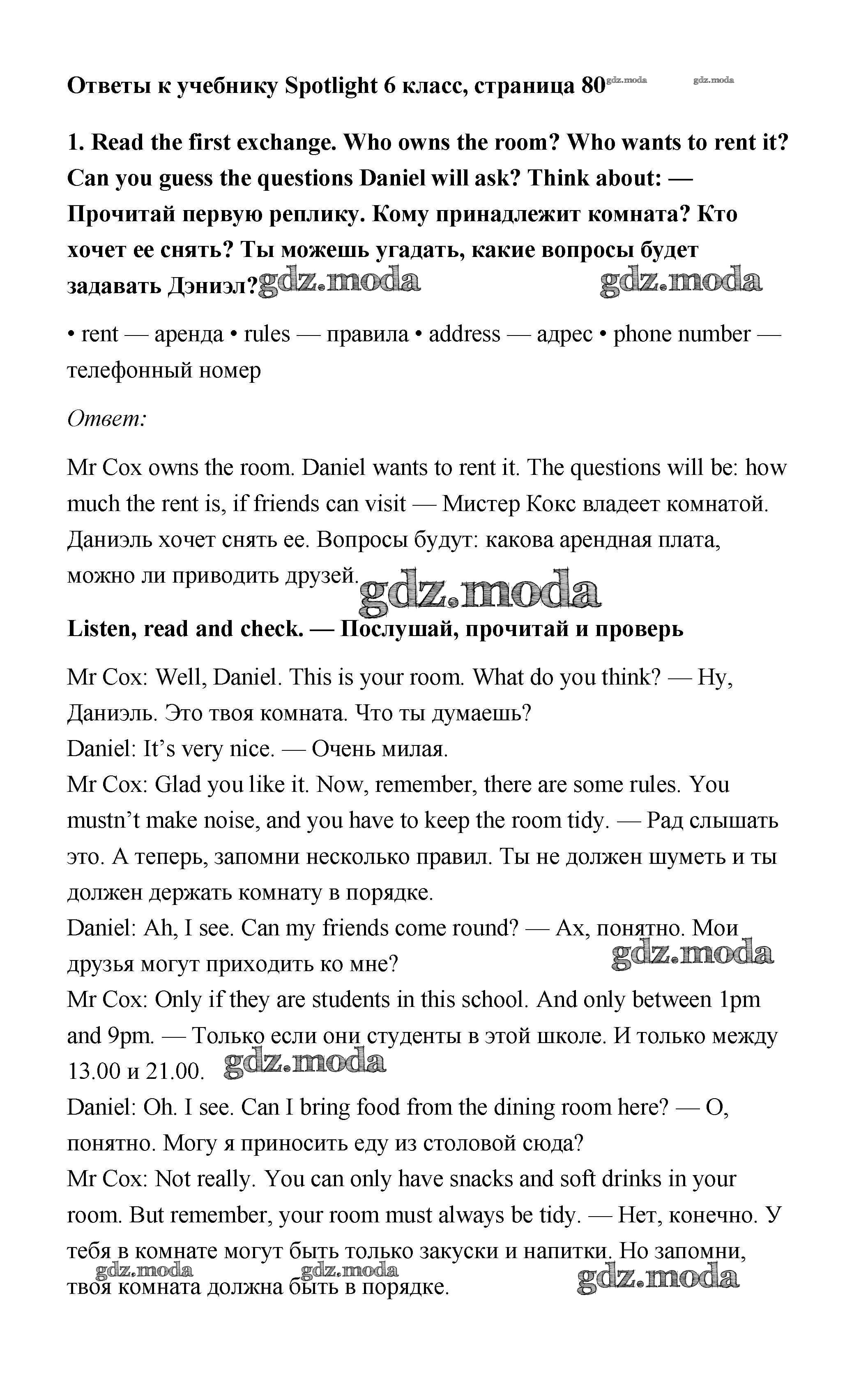 ОТВЕТ на задание № 80 Учебник по Английскому языку 6 класс Ваулина Spotlight