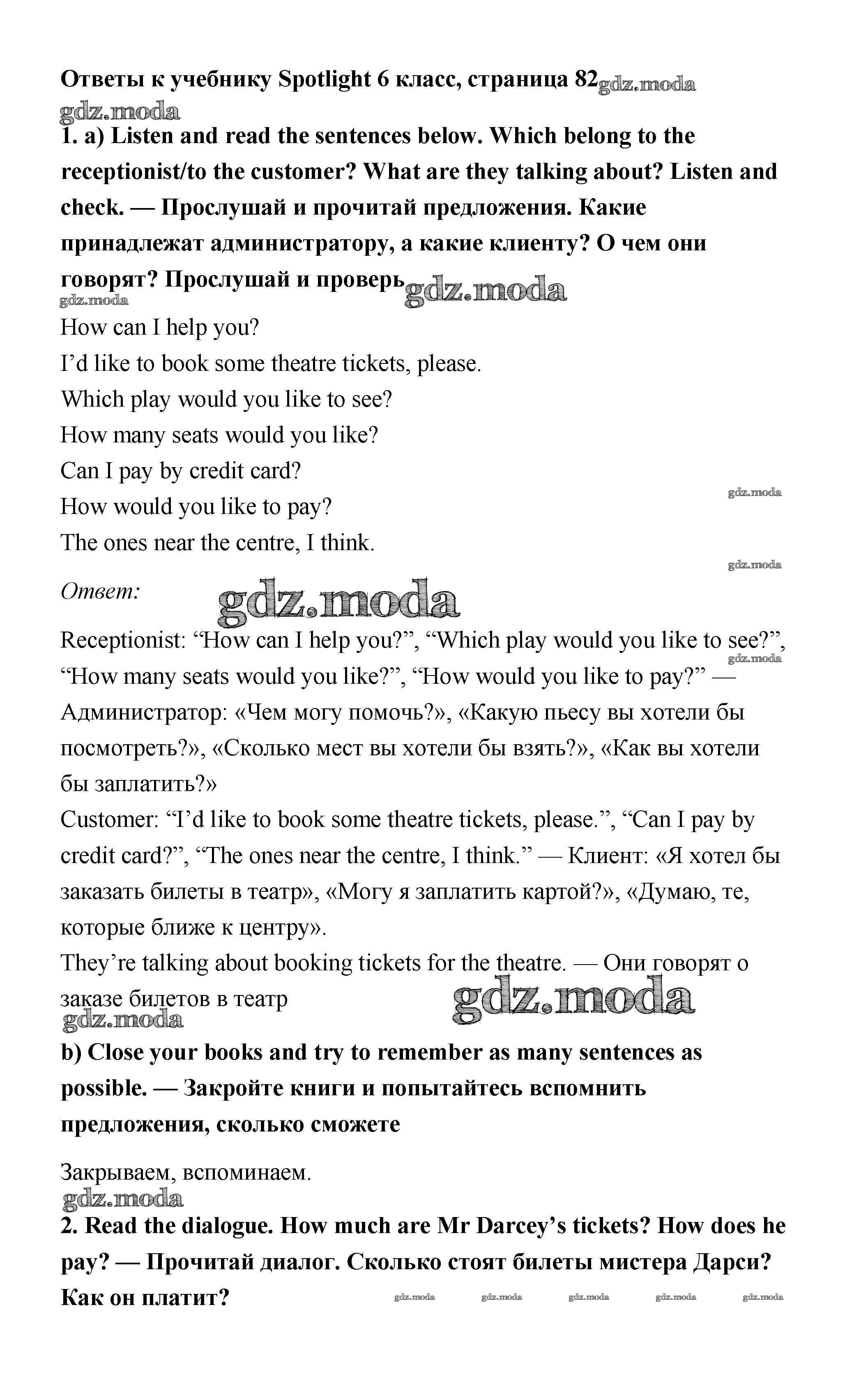 ОТВЕТ на задание № 82 Учебник по Английскому языку 6 класс Ваулина Spotlight