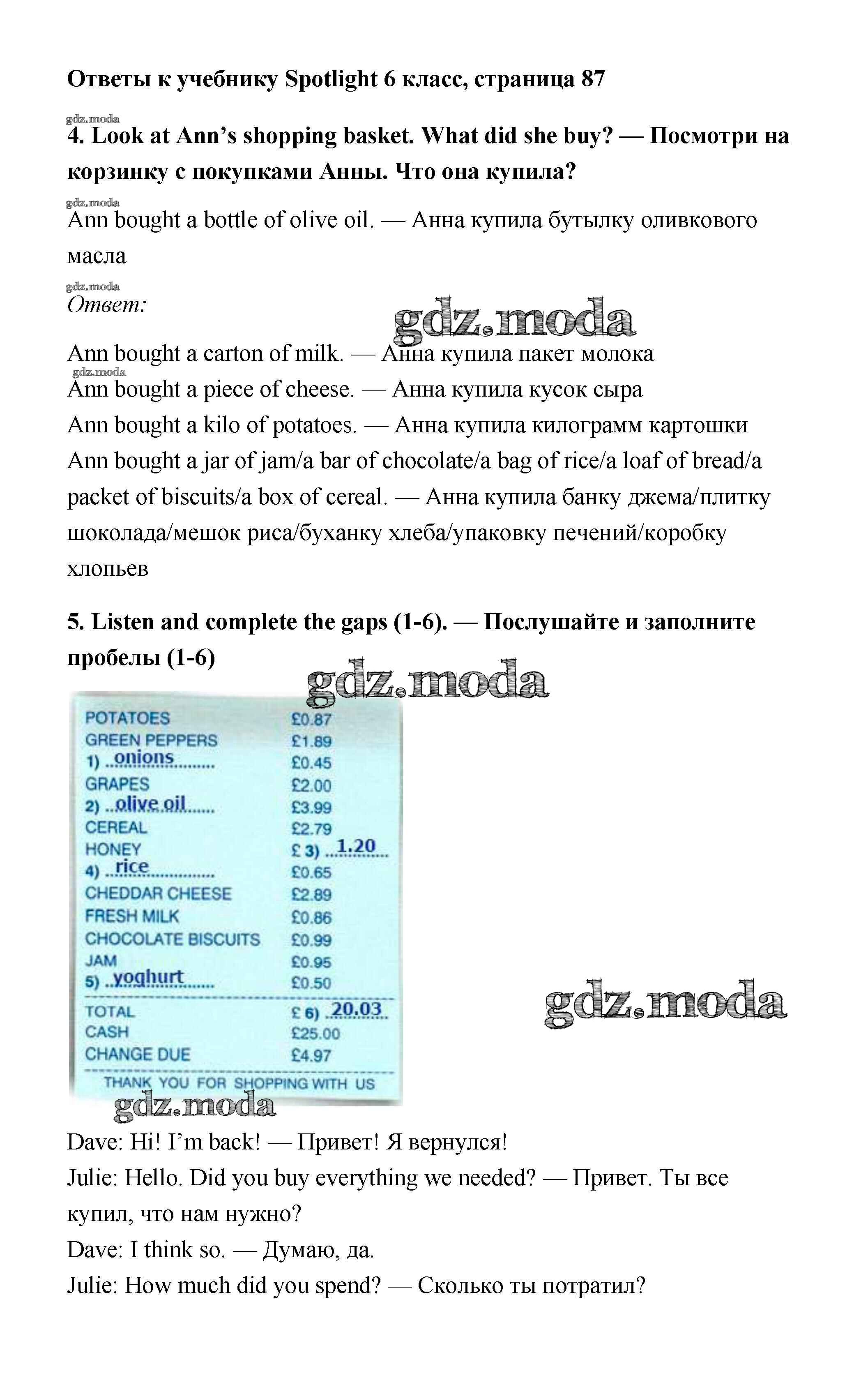 ОТВЕТ на задание № стр. 87 Учебник по Английскому языку 6 класс Ваулина Spotlight