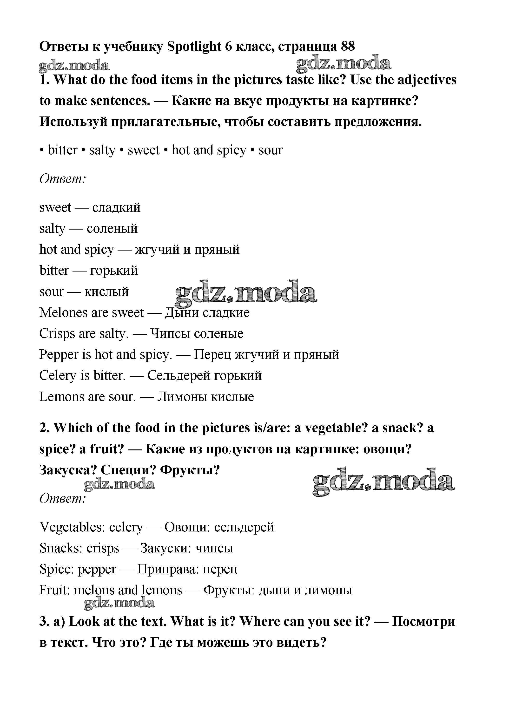 ОТВЕТ на задание № 88 Учебник по Английскому языку 6 класс Ваулина Spotlight