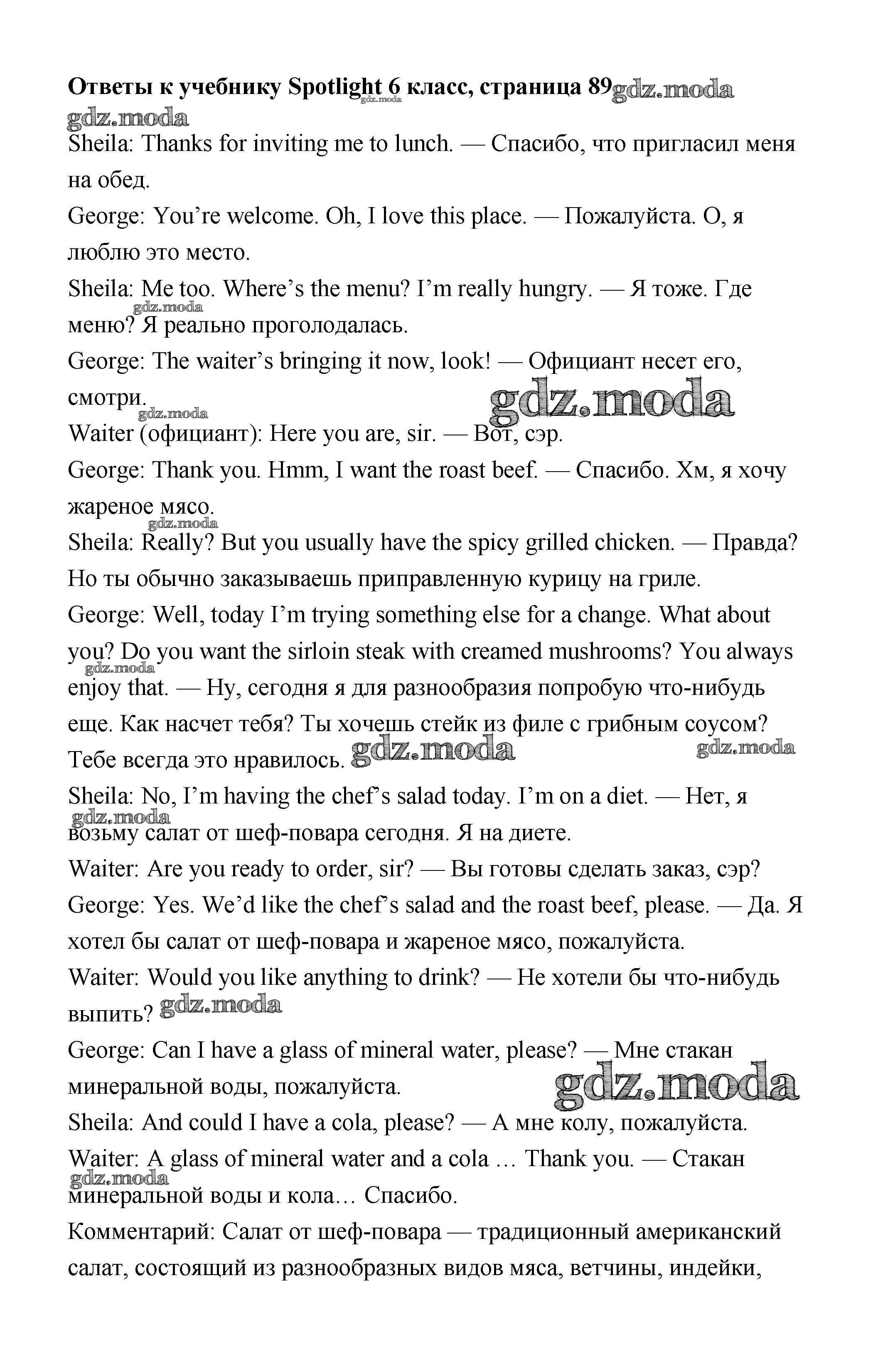ОТВЕТ на задание № 89 Учебник по Английскому языку 6 класс Ваулина Spotlight