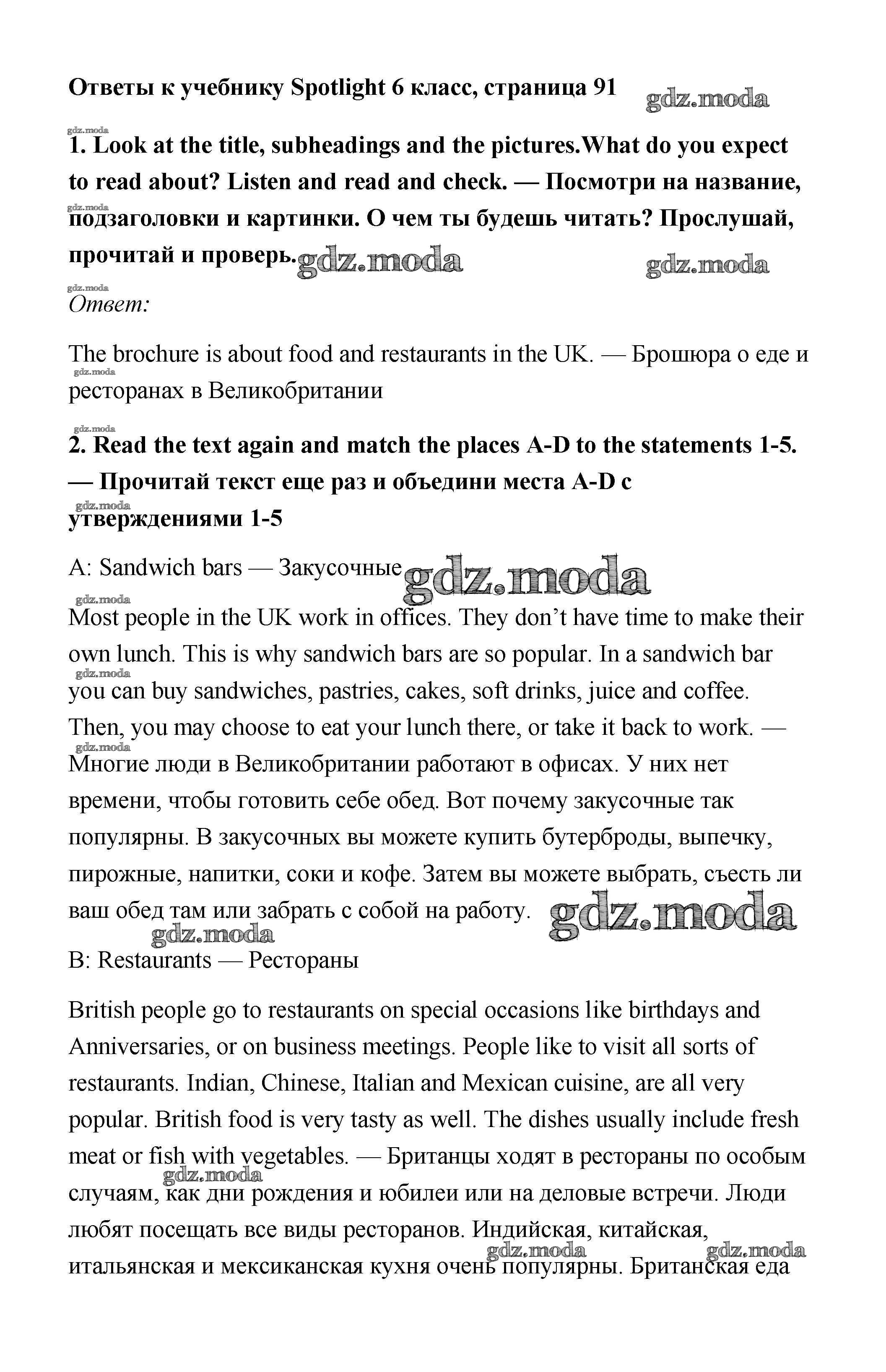 ОТВЕТ на задание № 91 Учебник по Английскому языку 6 класс Ваулина Spotlight