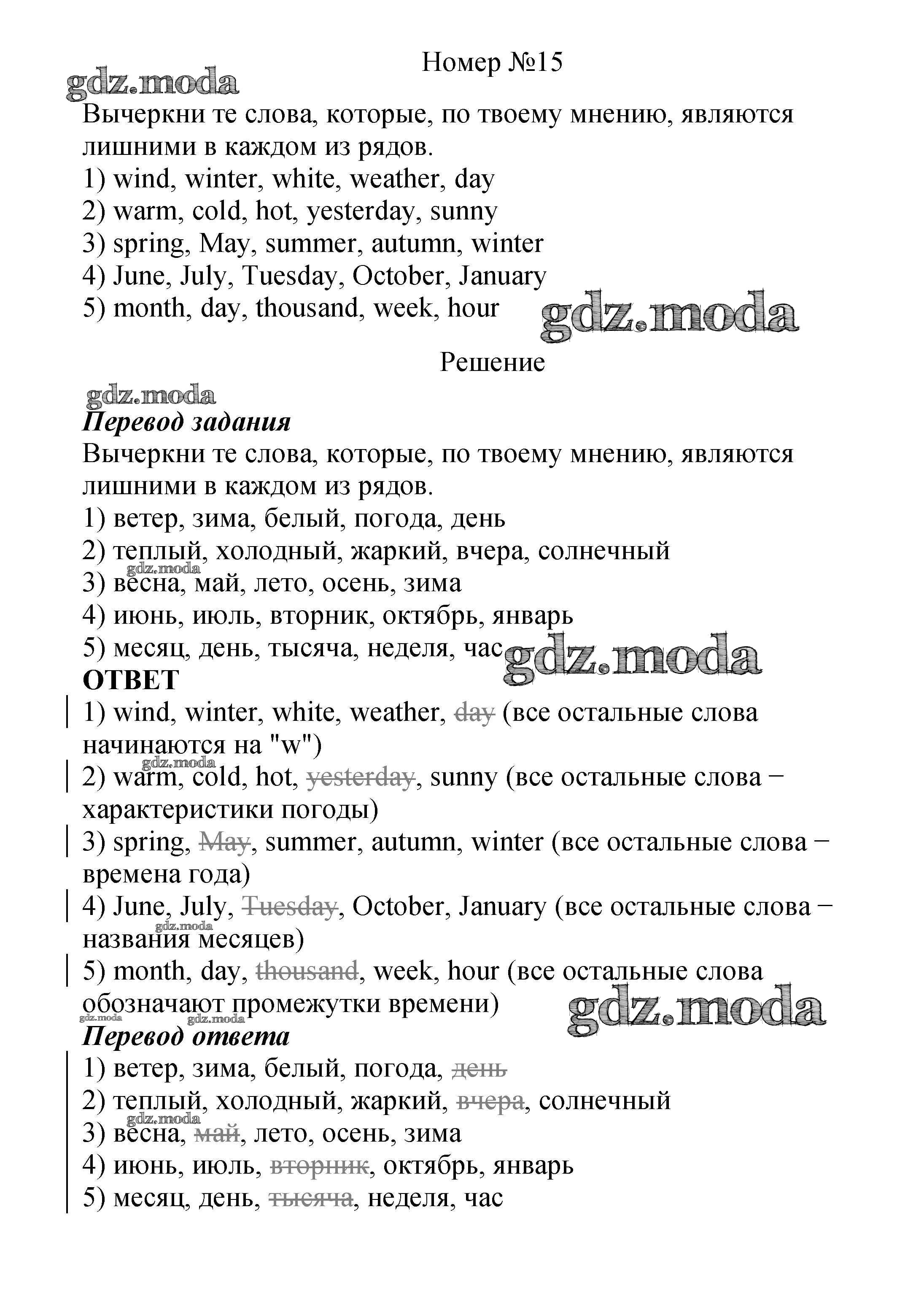 ГДЗ решение к заданию № 15 Английский язык как второй иностранный 6 класс рабочая тетрадь Афанасьева О.В. Дрофа 2017 Часть 1, Часть 2 ФГОС бесплатно на гдз.мода!