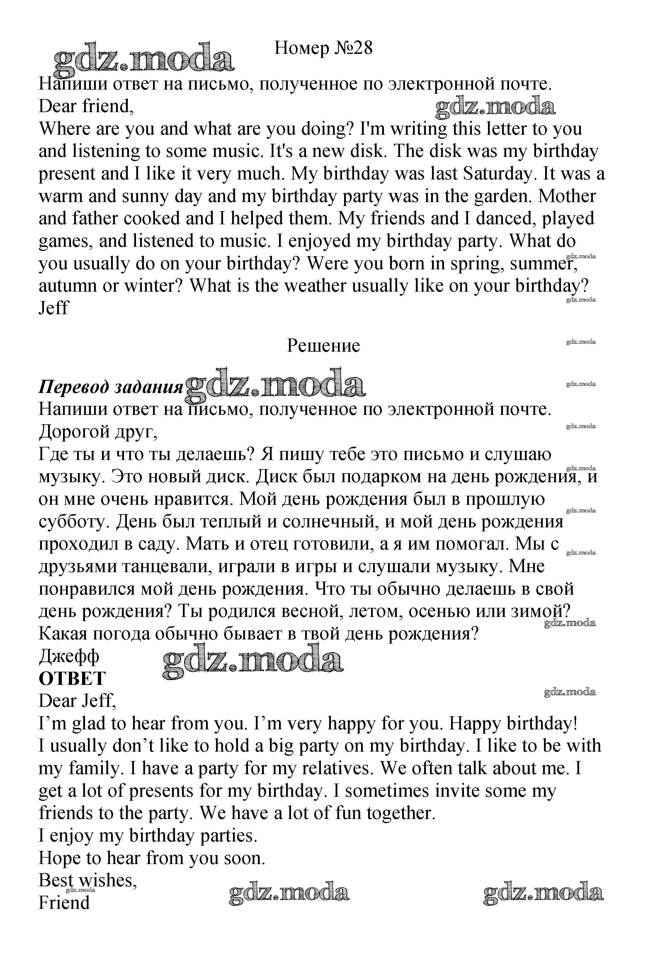ГДЗ решение к заданию № 28 Английский язык как второй иностранный 6 класс рабочая тетрадь Афанасьева О.В. Дрофа 2017 Часть 1, Часть 2 ФГОС бесплатно на гдз.мода!