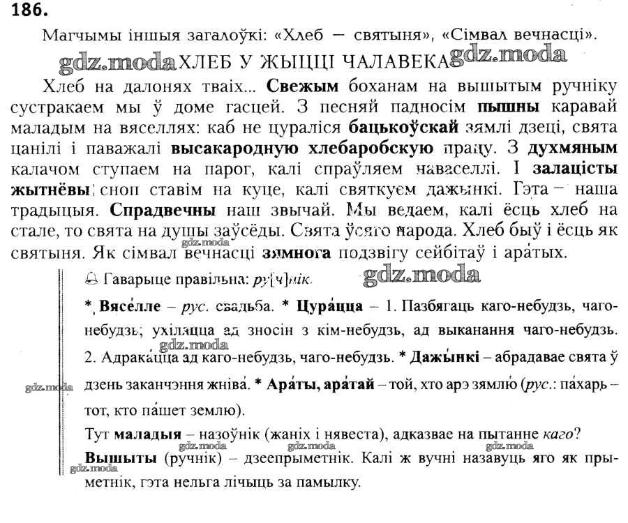 ГДЗ решение к заданию № 186 Белоруская мова 6 класс Красней В.П. Национальный институт образования 2015 ФГОС бесплатно на гдз.мода!