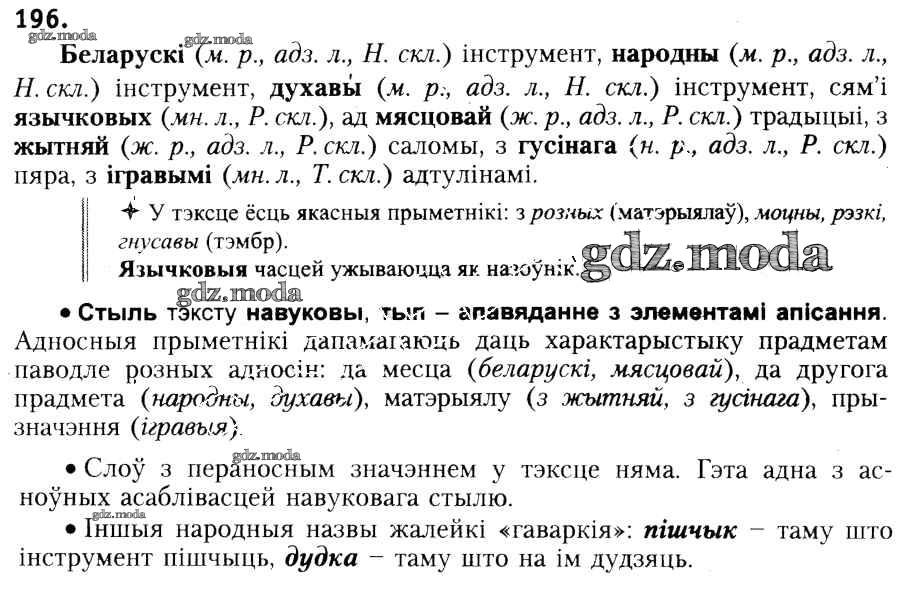 ГДЗ решение к заданию № 196 Белоруская мова 6 класс Красней В.П. Национальный институт образования 2015 ФГОС бесплатно на гдз.мода!