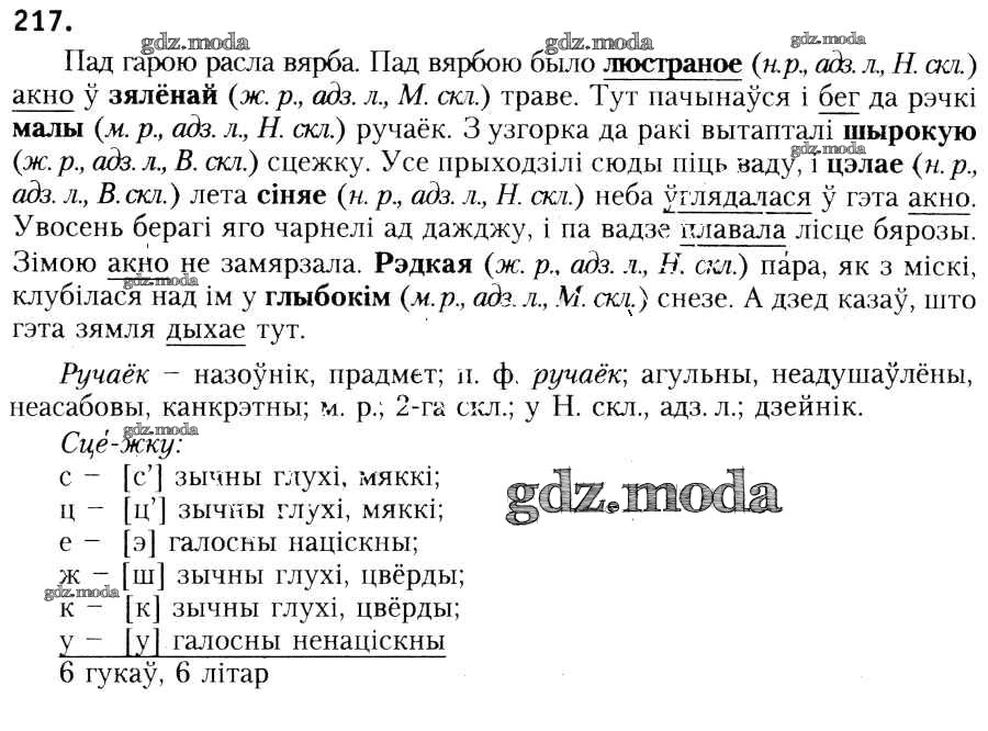 ГДЗ решение к заданию № 217 Белоруская мова 6 класс Красней В.П. Национальный институт образования 2015 ФГОС бесплатно на гдз.мода!